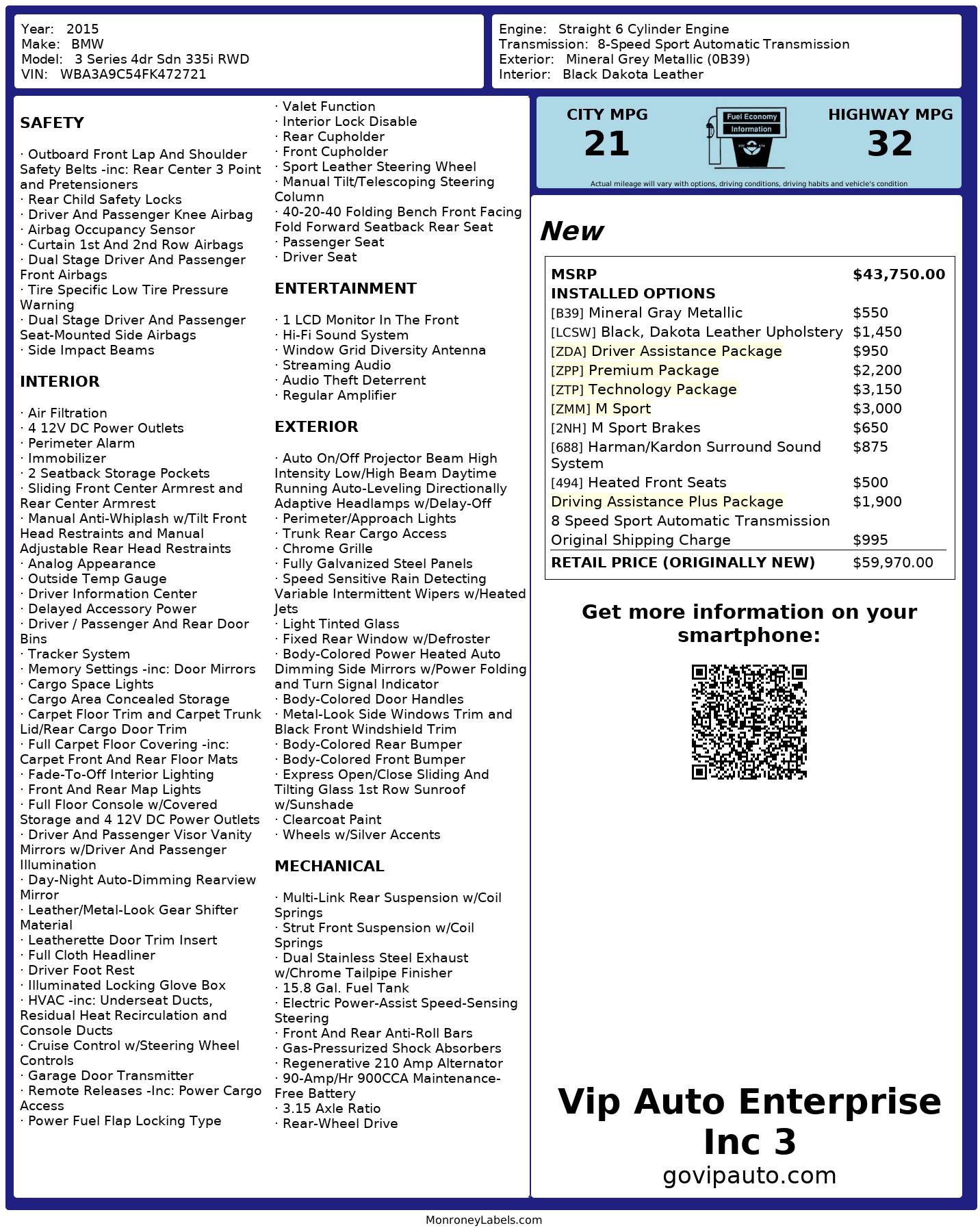 2015 BMW 3 Series 4dr Sdn 335i Rwd