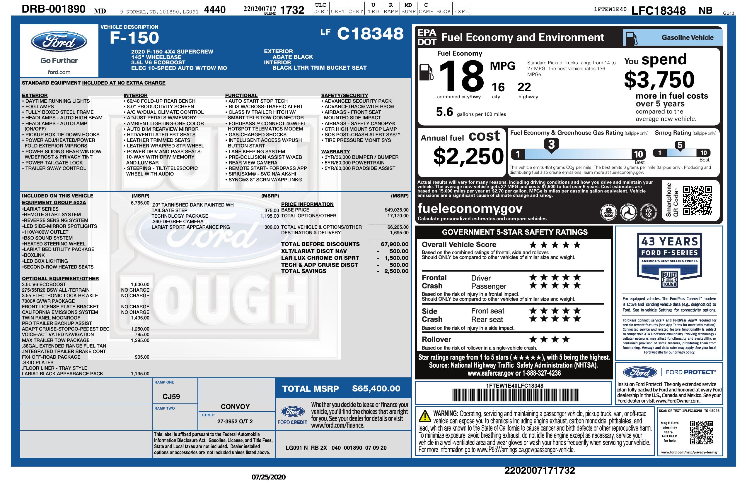 2020 Ford F 150 Lariat 4 Wd Super Crew 5.5' Box