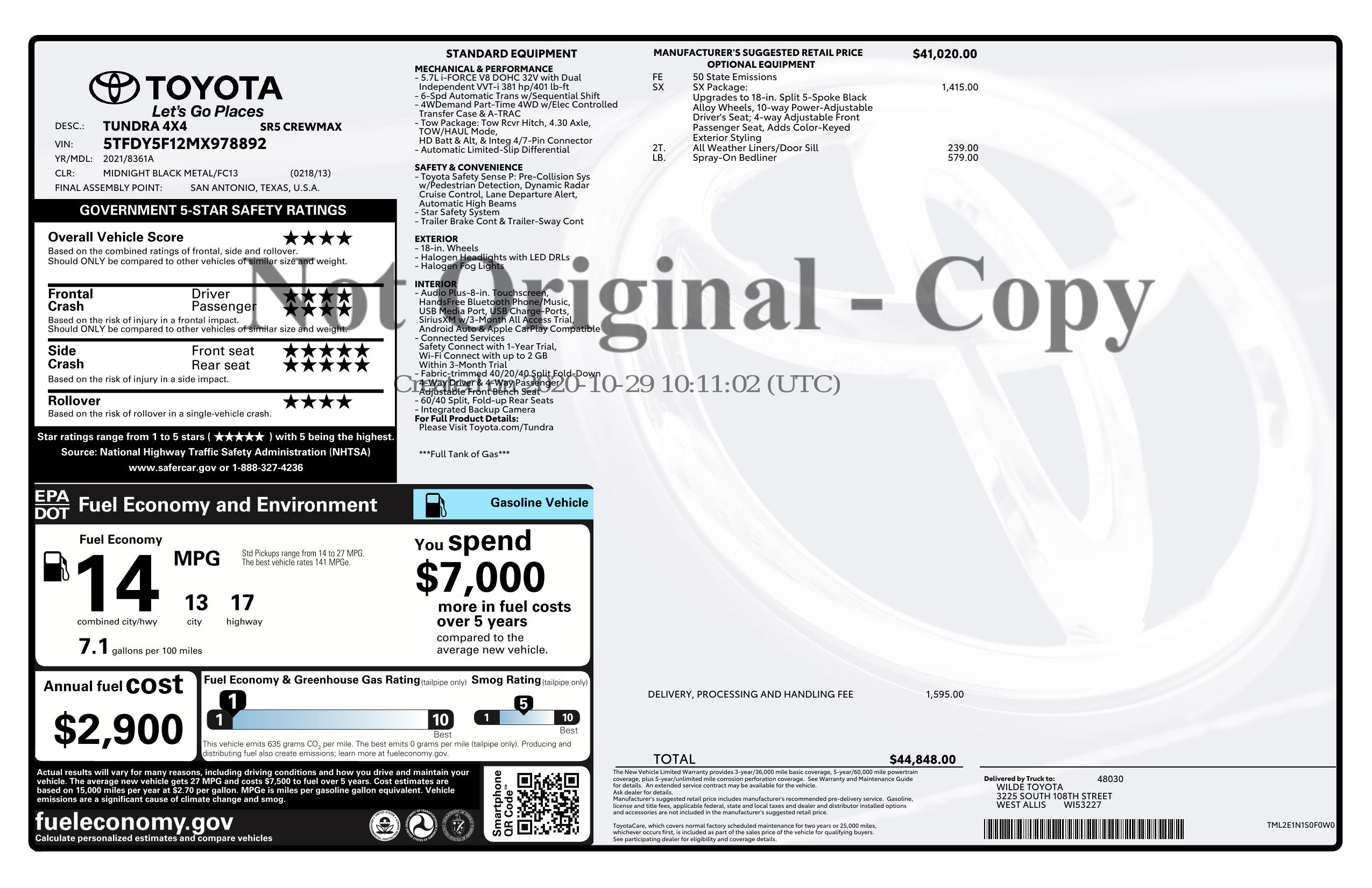 2021 Toyota Tundra 4 Wd Crew Max 5.5' Bed 5.7 L (Natl)