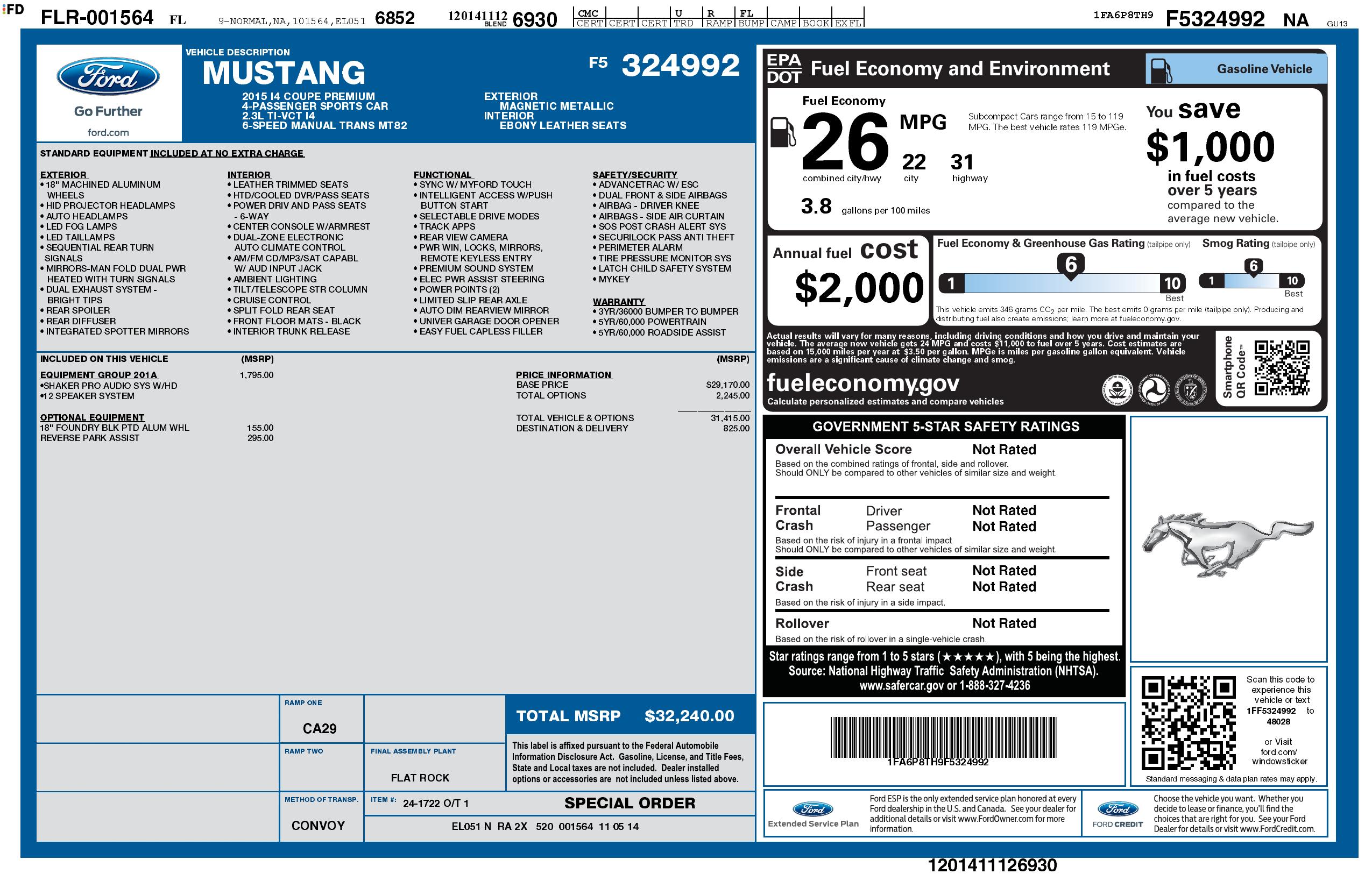 2015 Ford Mustang 2dr Fastback Eco Boost
