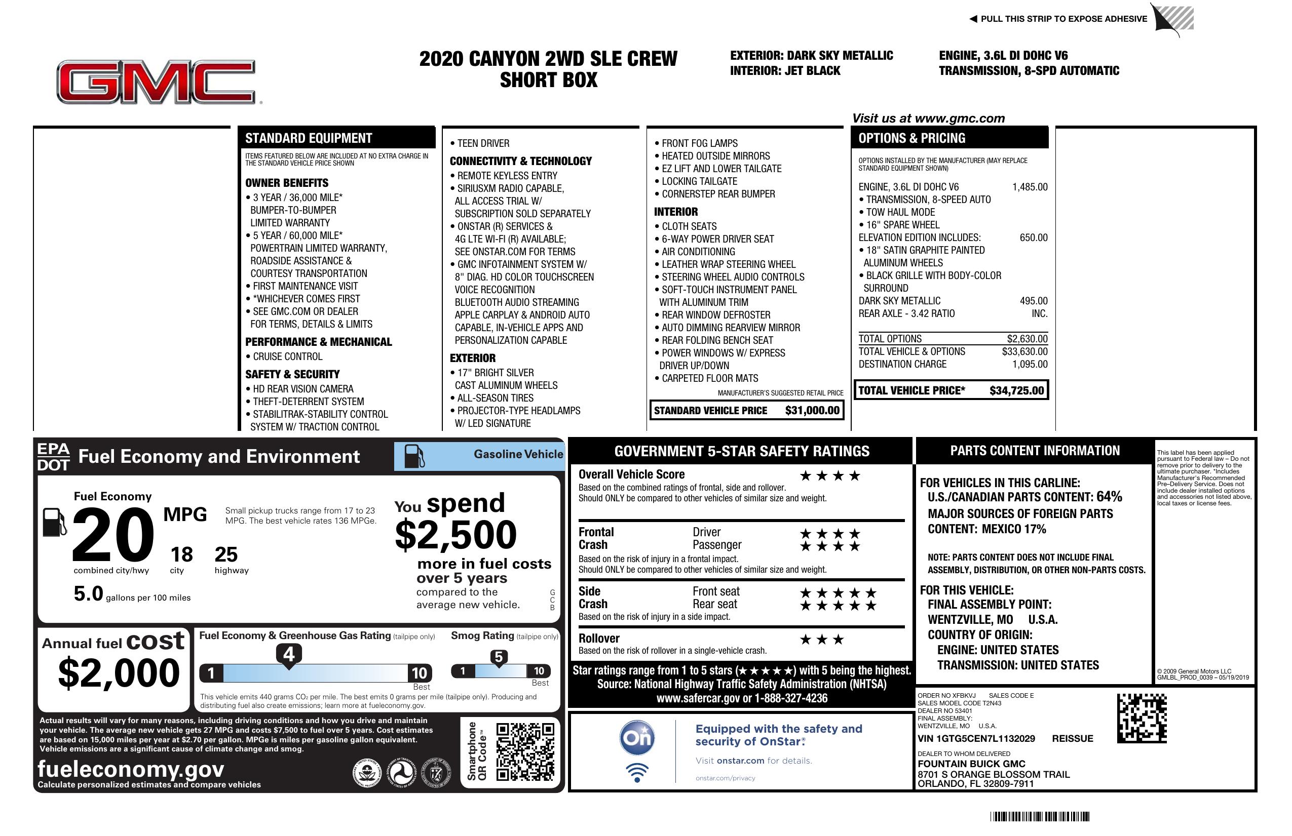 2020 GMC Canyon 2 Wd Crew Cab 128" Sle