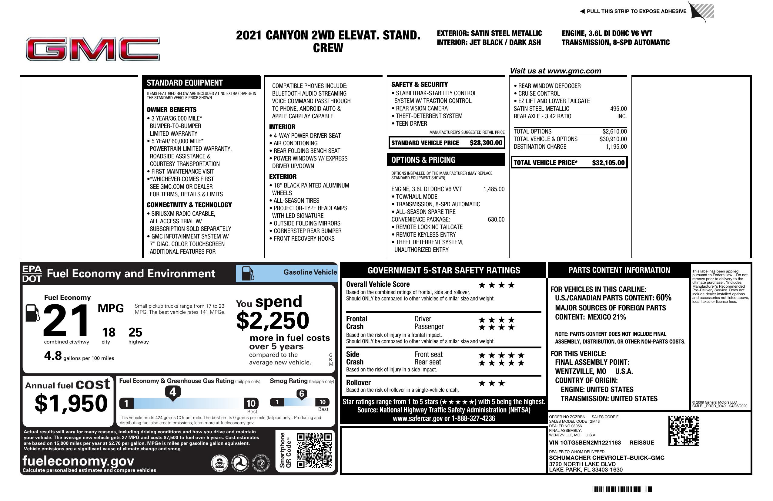 2021 GMC Canyon 2 Wd Crew Cab 128" Elevation Standard