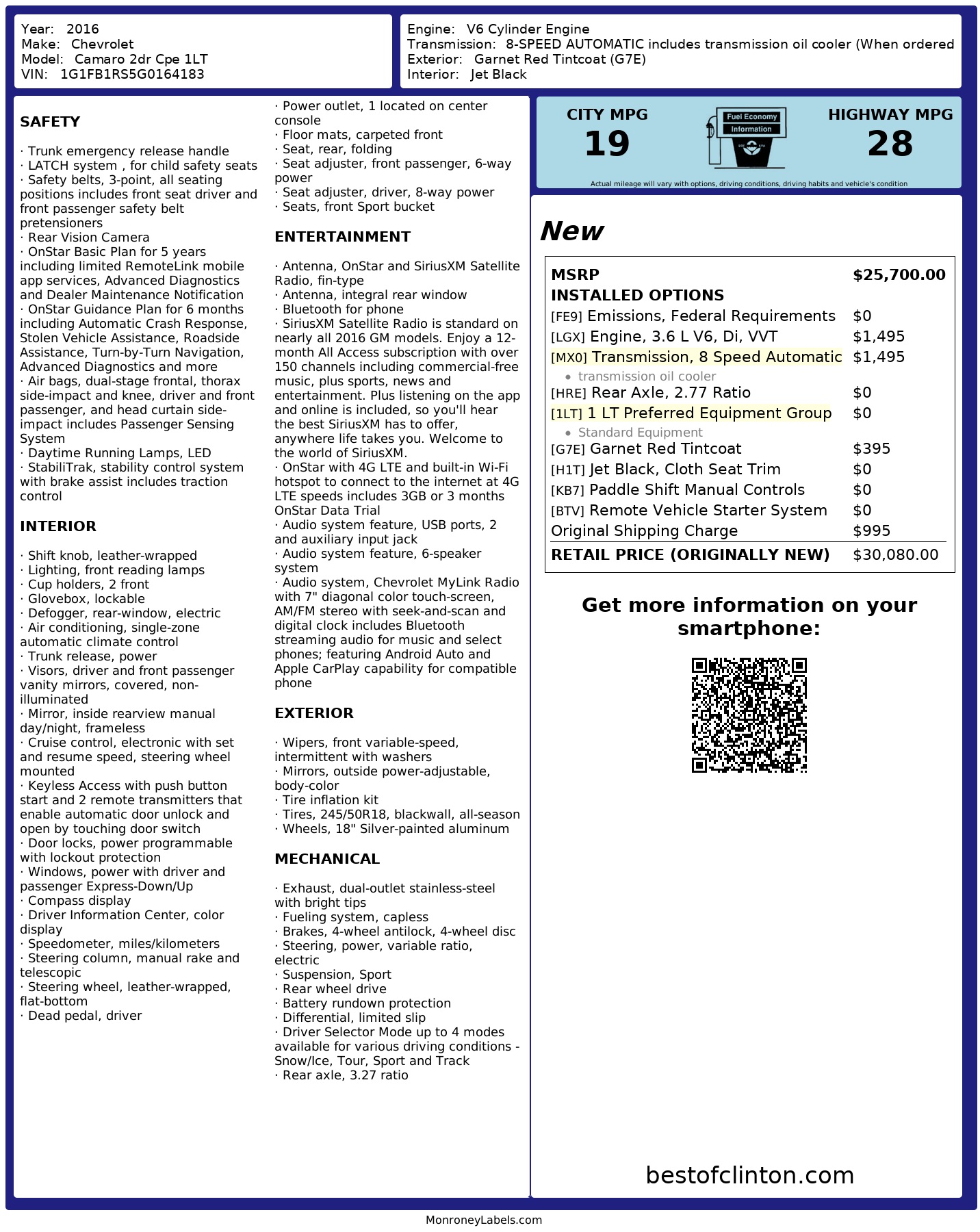 2016 Chevrolet Camaro 2dr Cpe 1 Lt