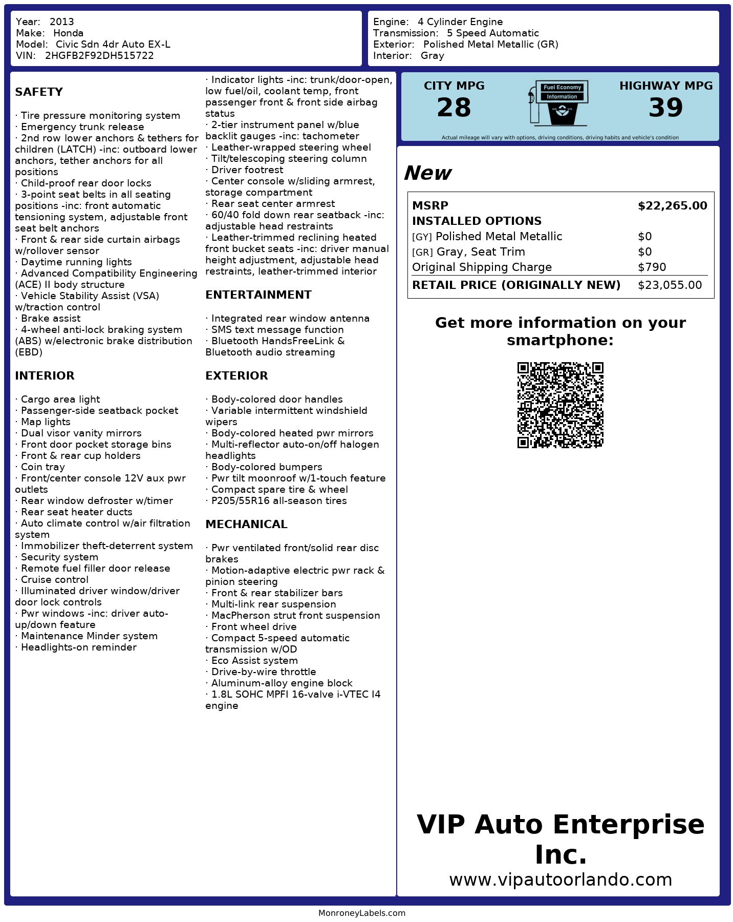 2013 Honda Civic Sdn 4dr Auto Ex L