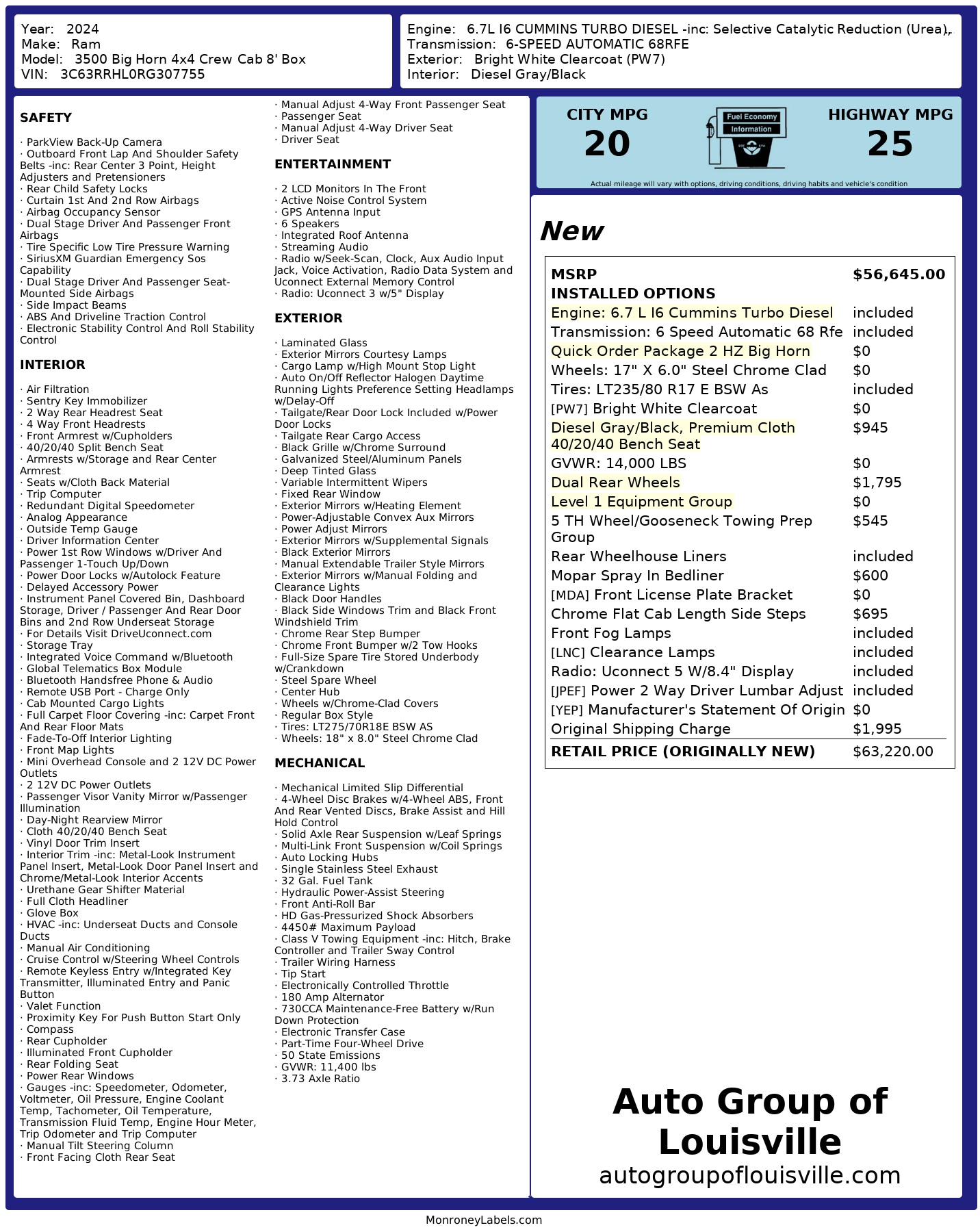 2024 Ram 3500 Big Horn 4x4 Crew Cab 8' Box