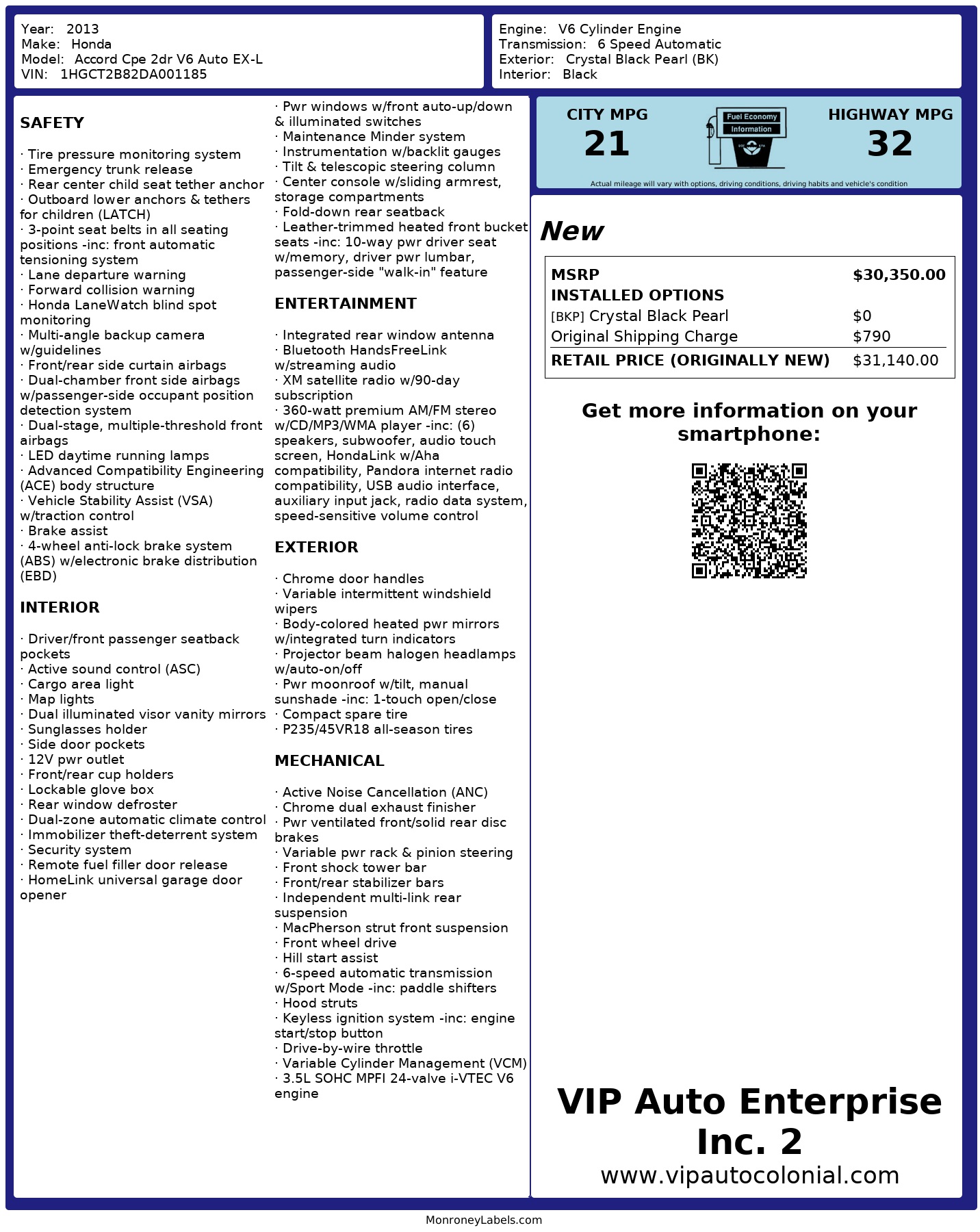 2013 Honda Accord Cpe 2dr V6 Auto Ex L