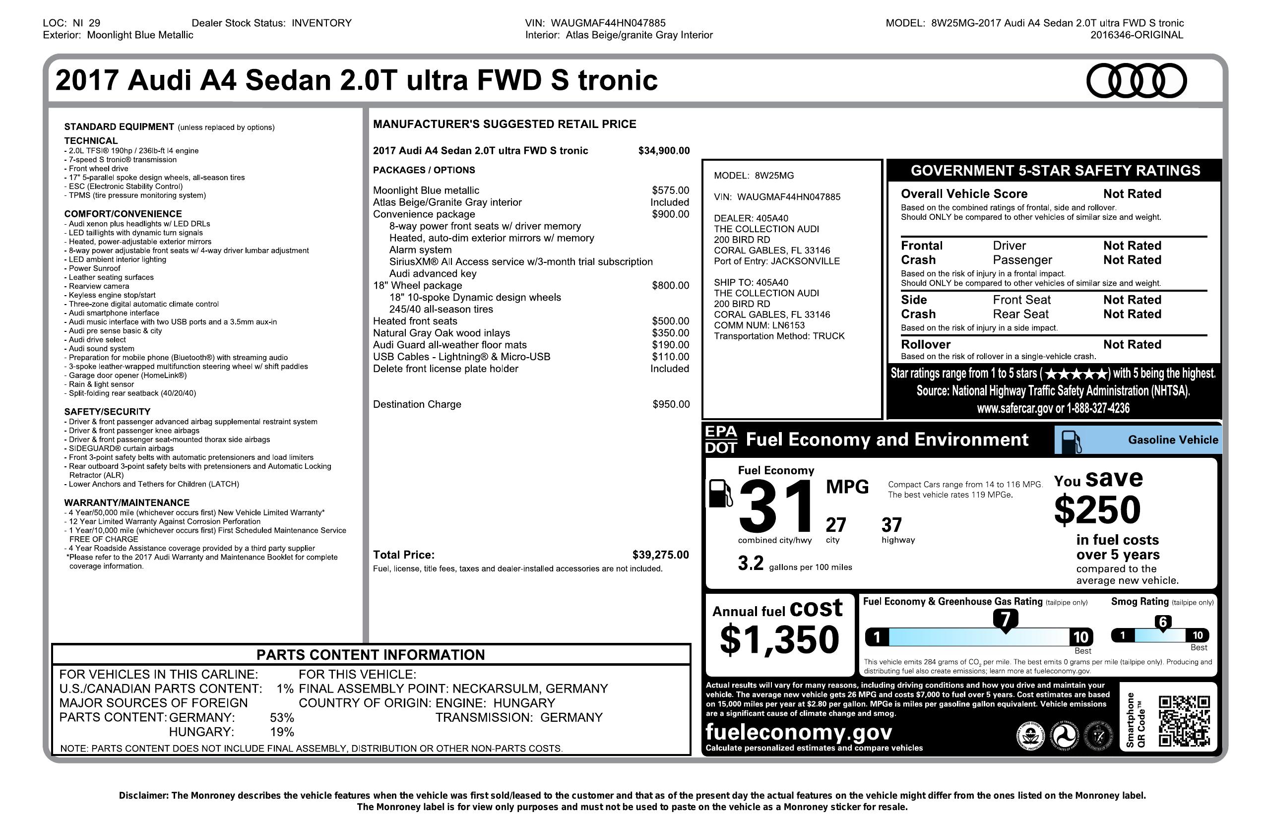 2017 Audi A4 2.0 Tfsi Auto Ultra Premium Fwd