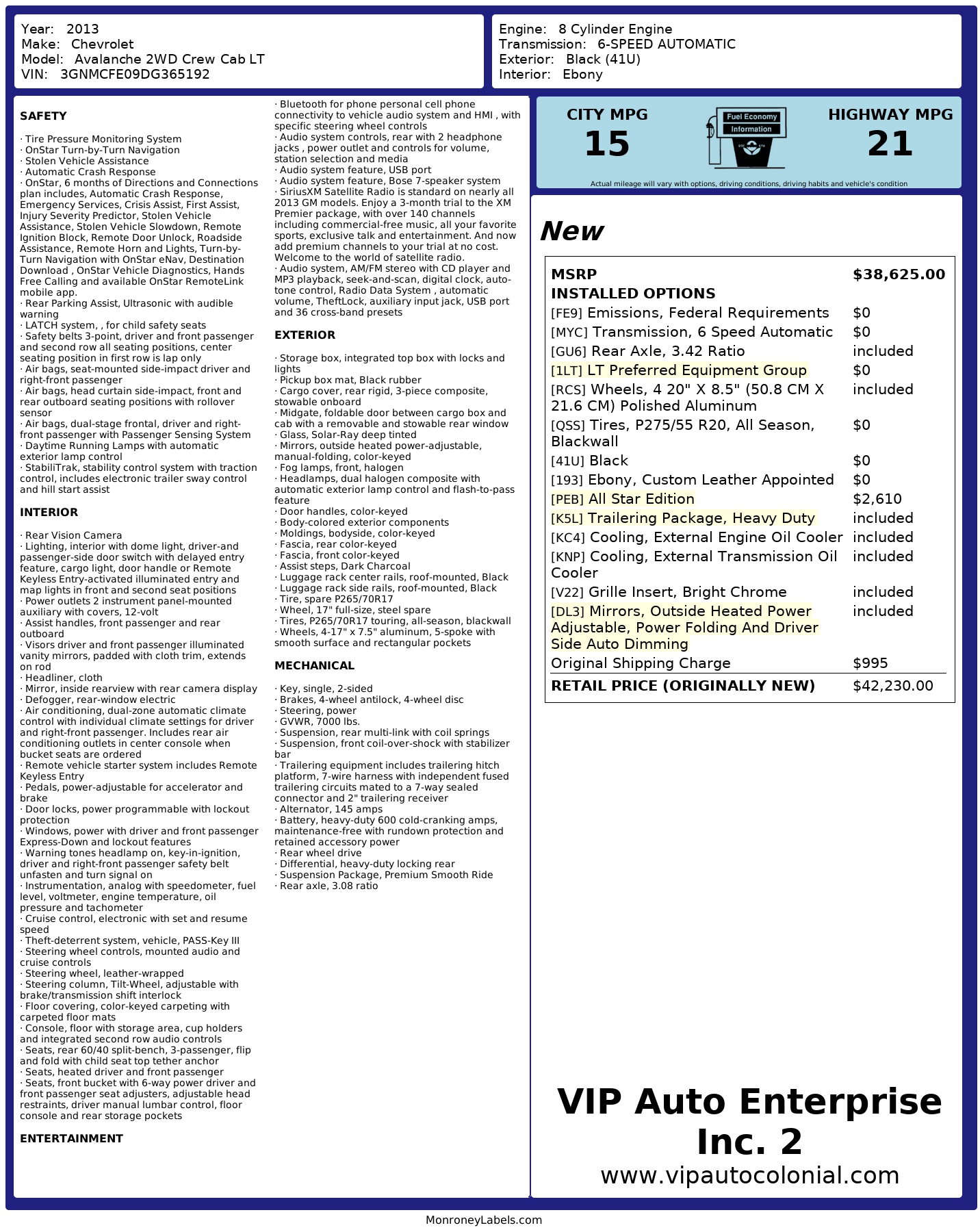 2013 Chevrolet Avalanche 2 Wd Crew Cab Lt