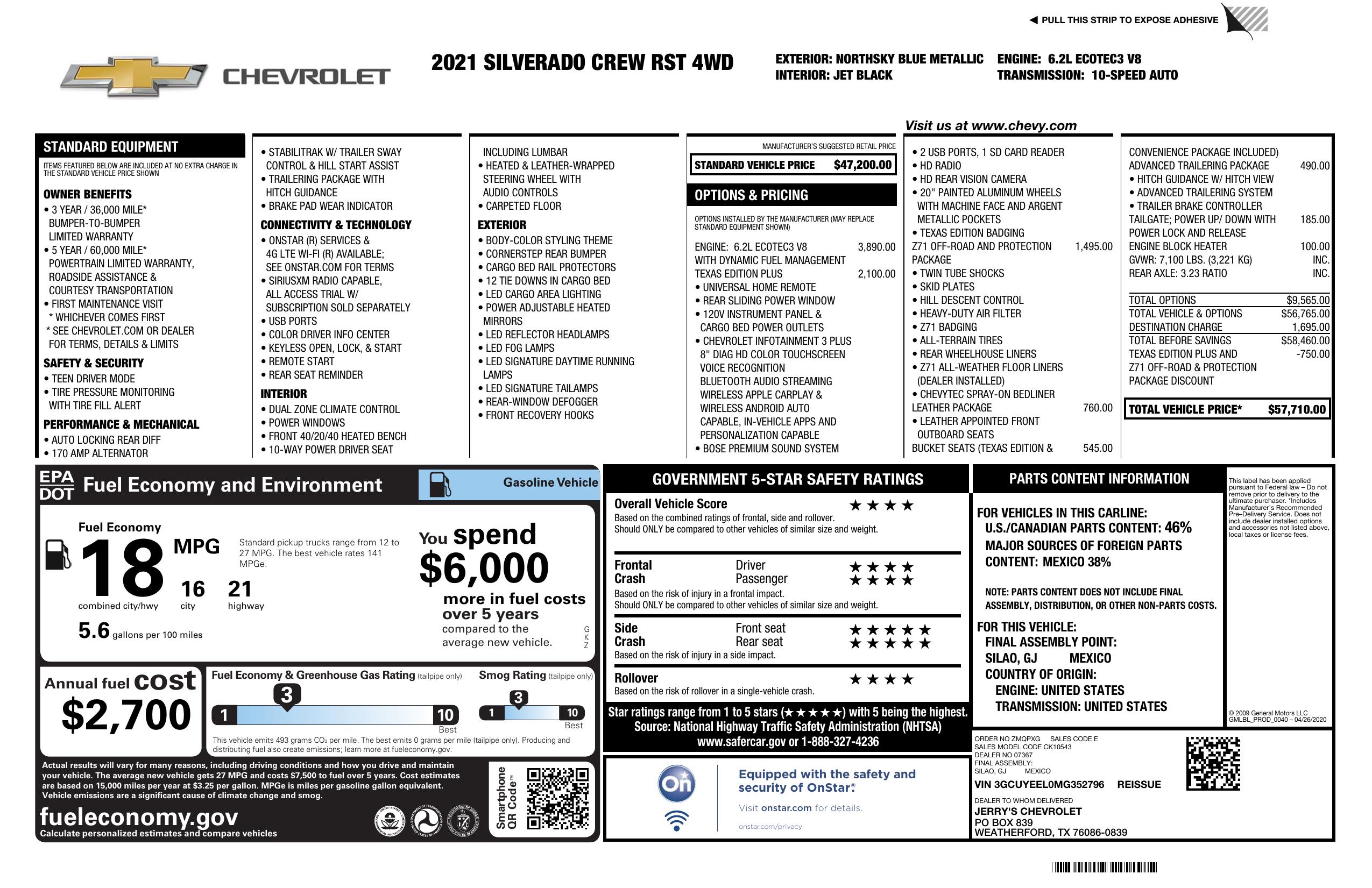 2021 Chevrolet Silverado 1500 4 Wd Crew Cab 147" Rst