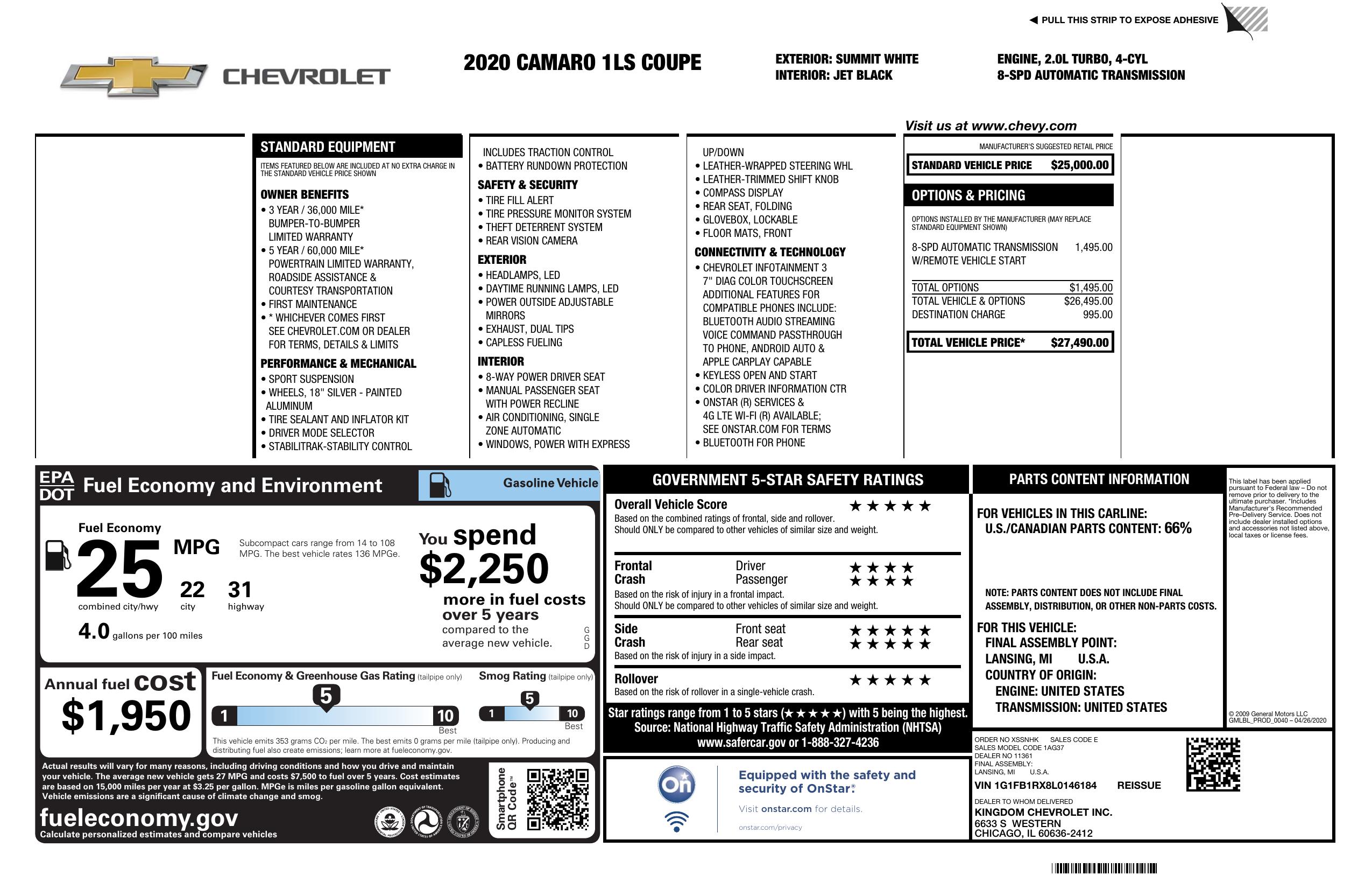 2020 Chevrolet Camaro 2dr Cpe 1 Ls