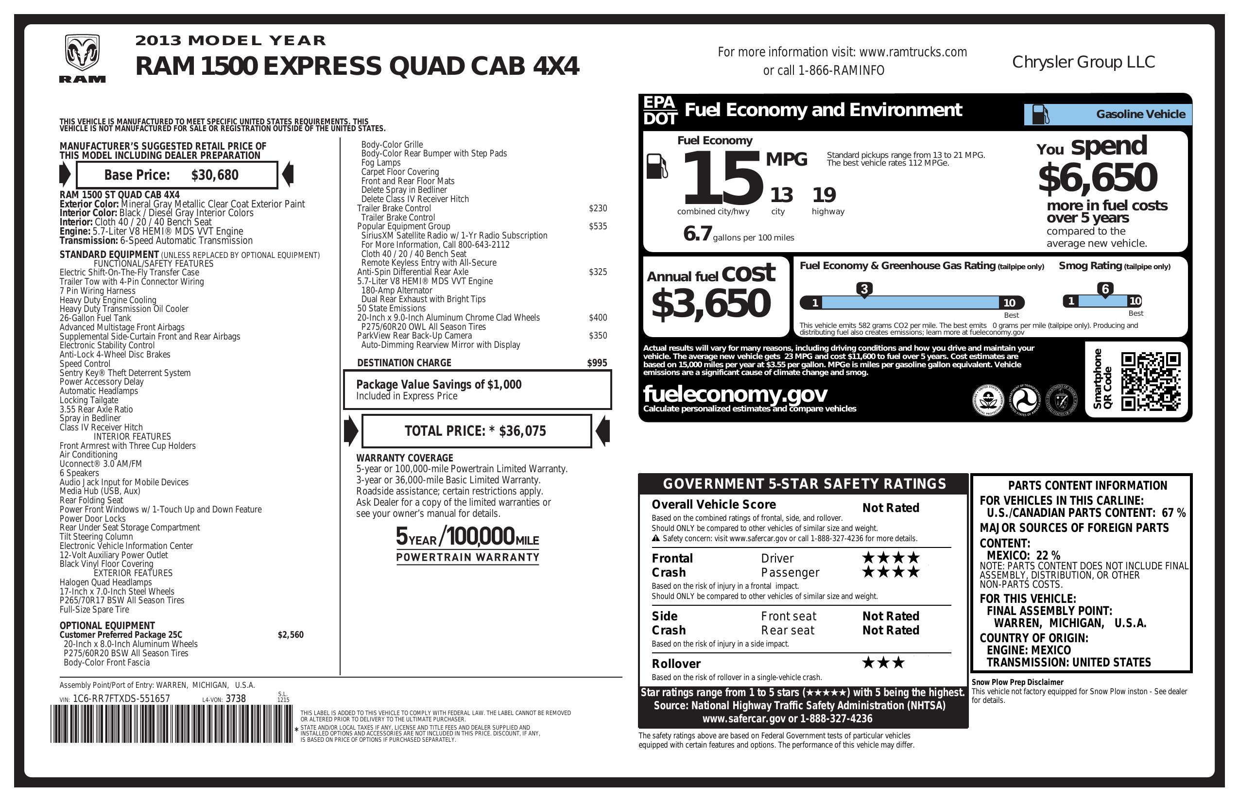 2013 Ram 1500 4 Wd Quad Cab 140.5" Express
