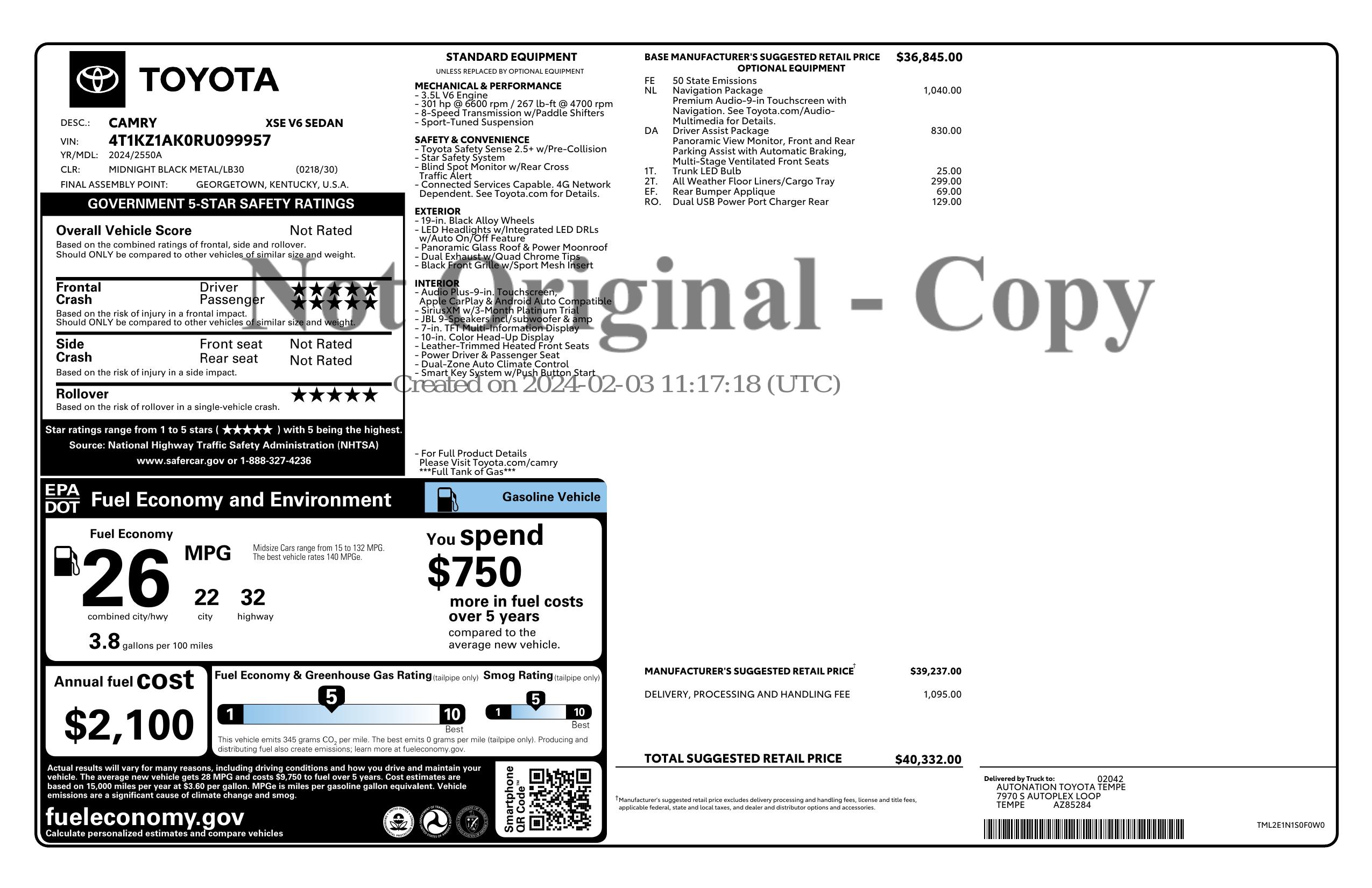2024 Toyota Camry V6 Auto (Natl)