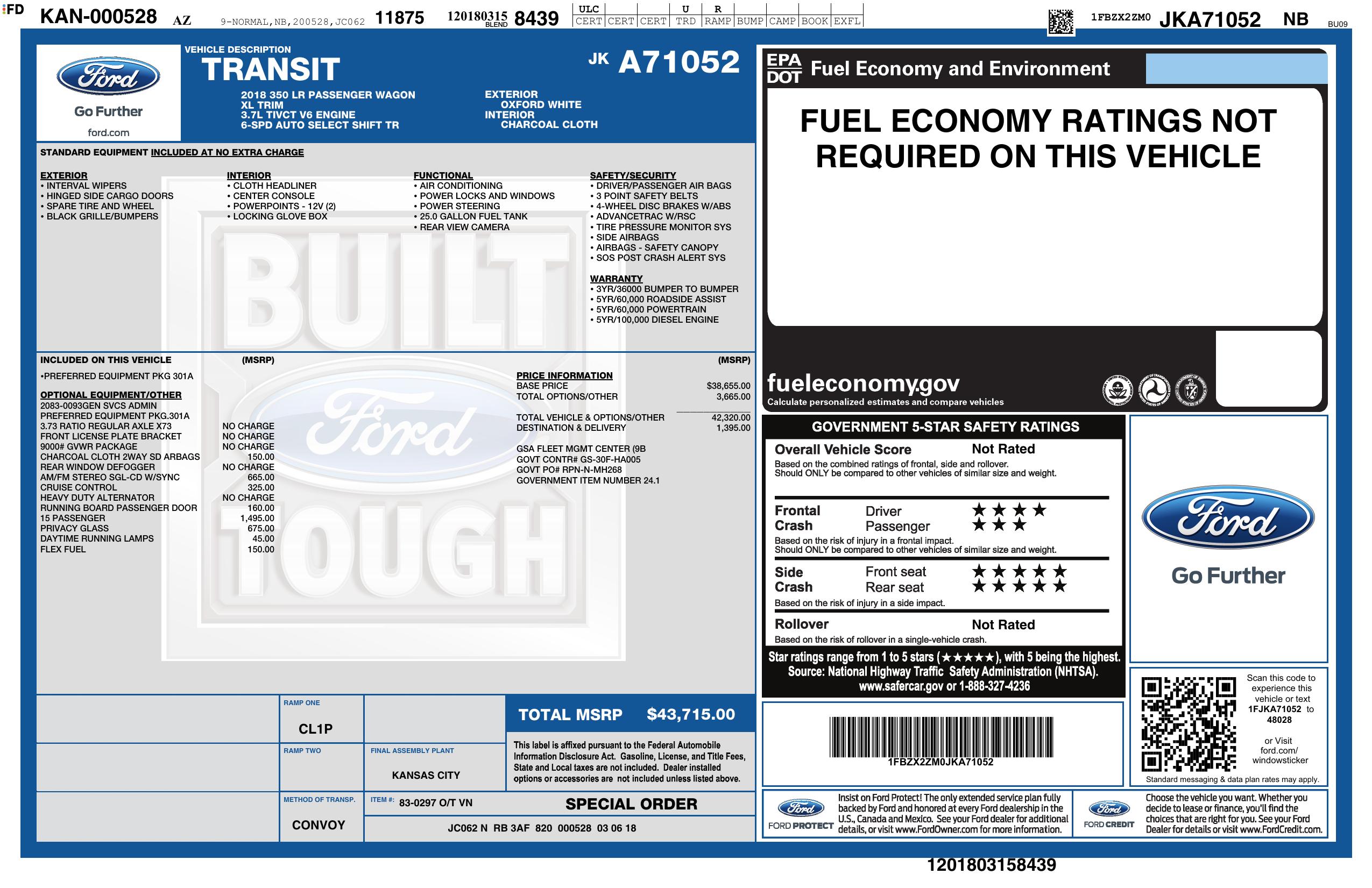 2018 Ford Transit Passenger Wagon T 350 148" Low Roof Swing Out Rh Dr