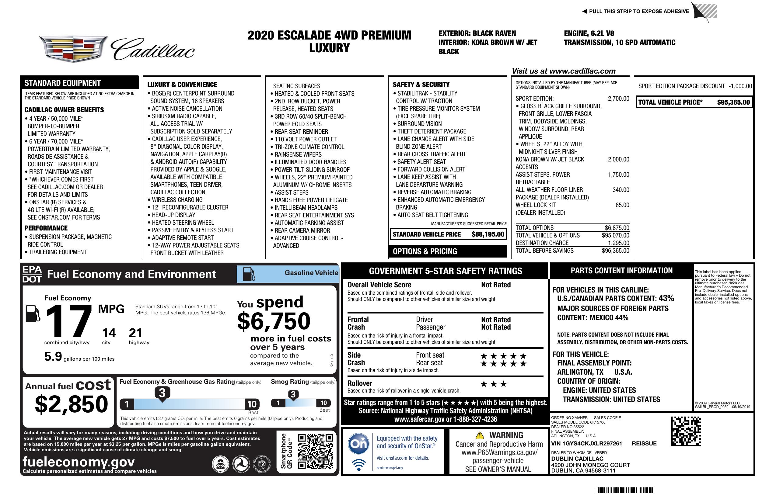 2020 Cadillac Escalade 4 Wd 4dr Premium Luxury