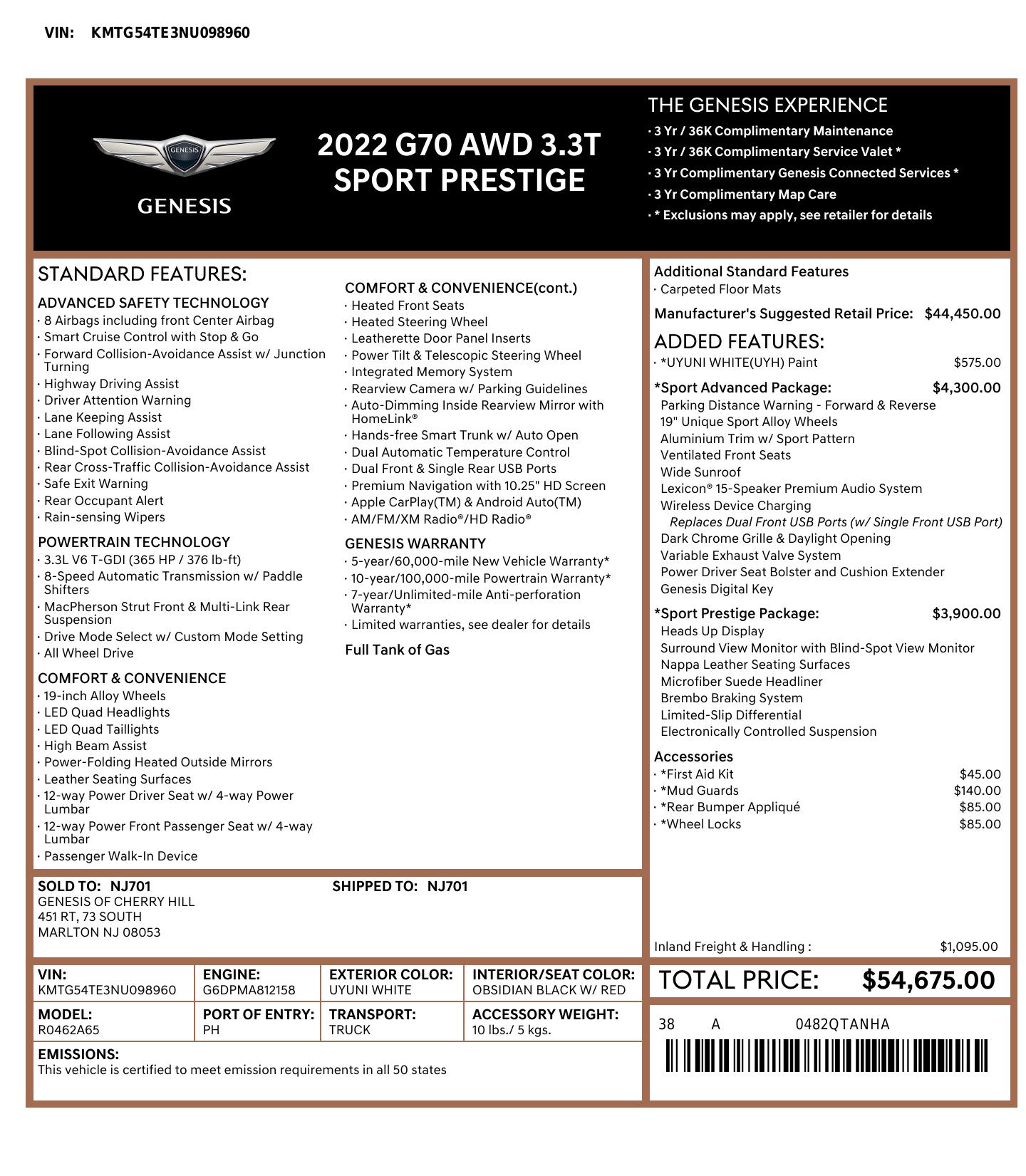 2022 Genesis G70 3.3 T Awd