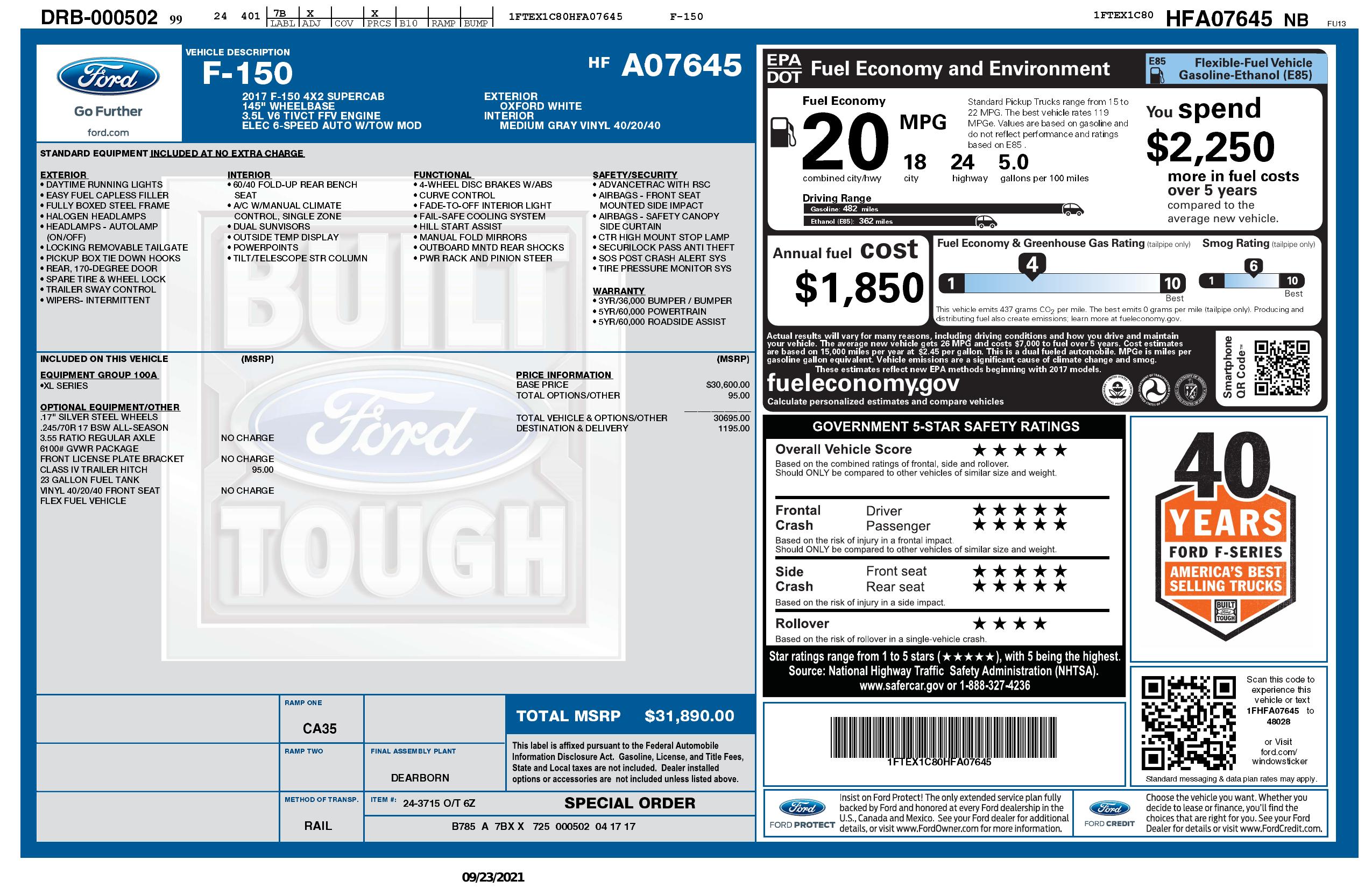 2017 Ford F 150 2 Wd Super Cab 6.5' Box
