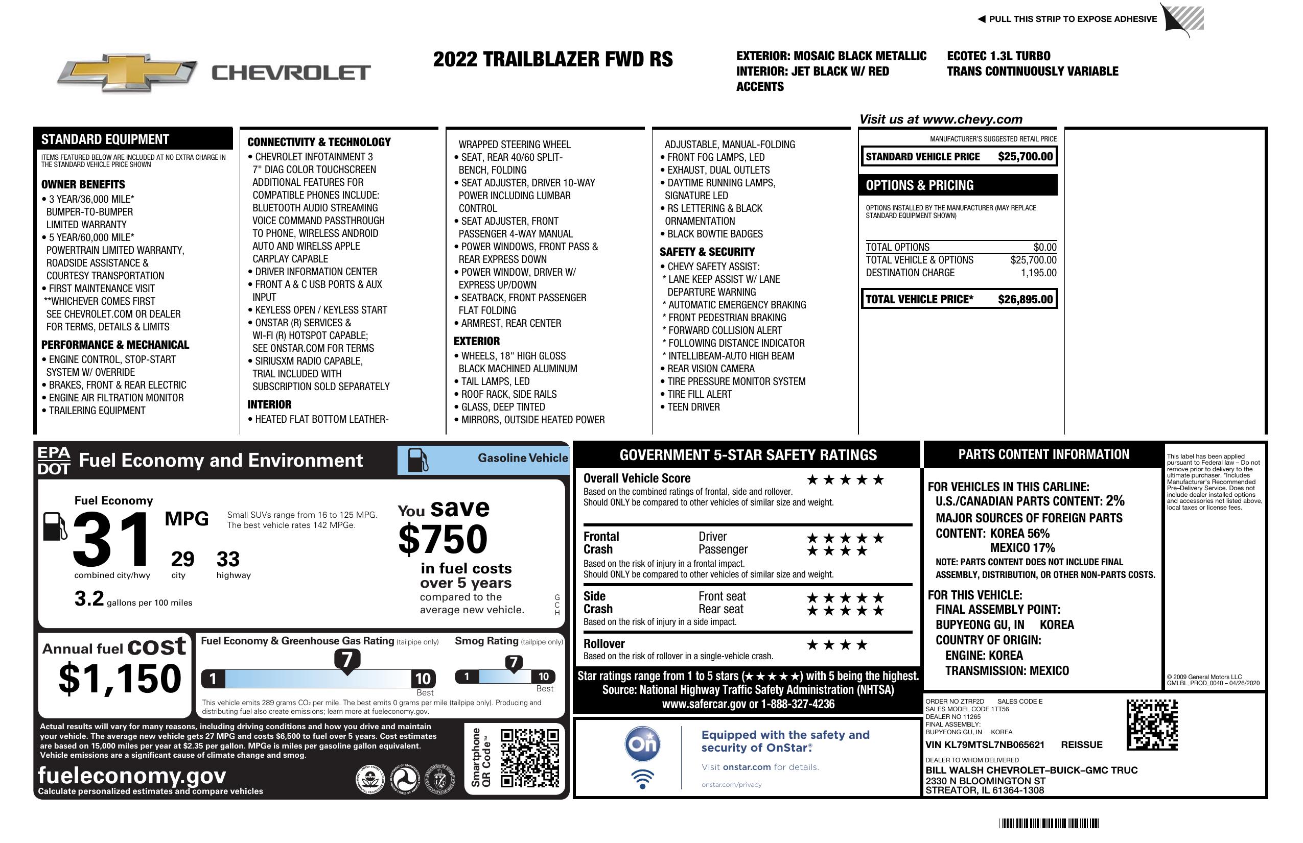 2022 Chevrolet Trailblazer Fwd 4dr Rs