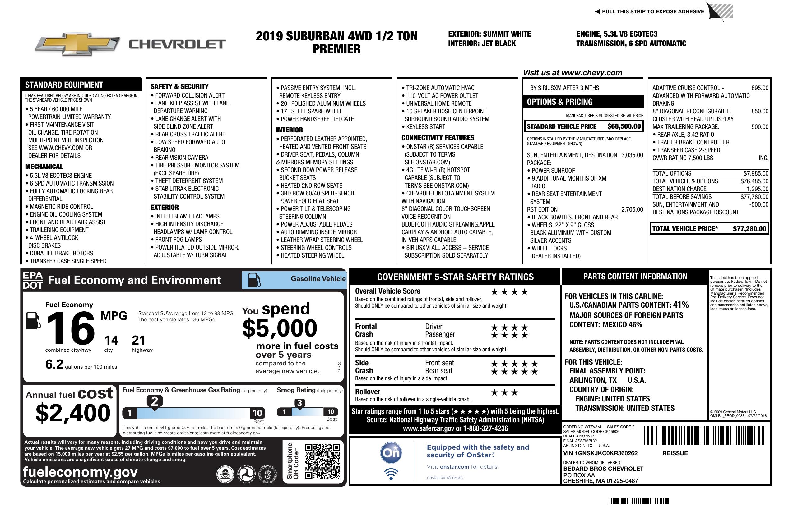 2019 Chevrolet Suburban 4 Wd 4dr 1500 Premier
