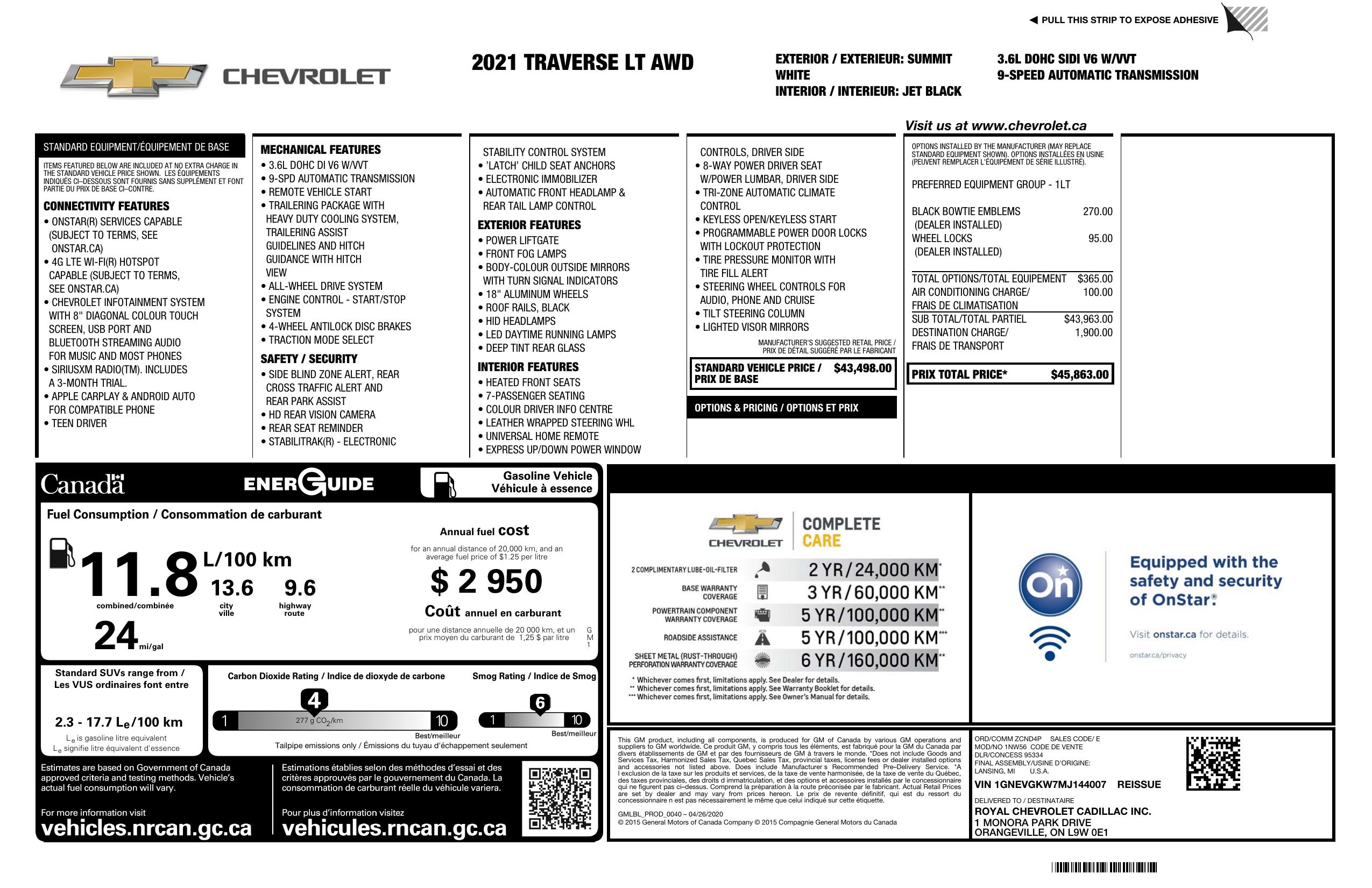2021 Chevrolet Traverse Awd 4dr Lt Cloth W/1 Lt