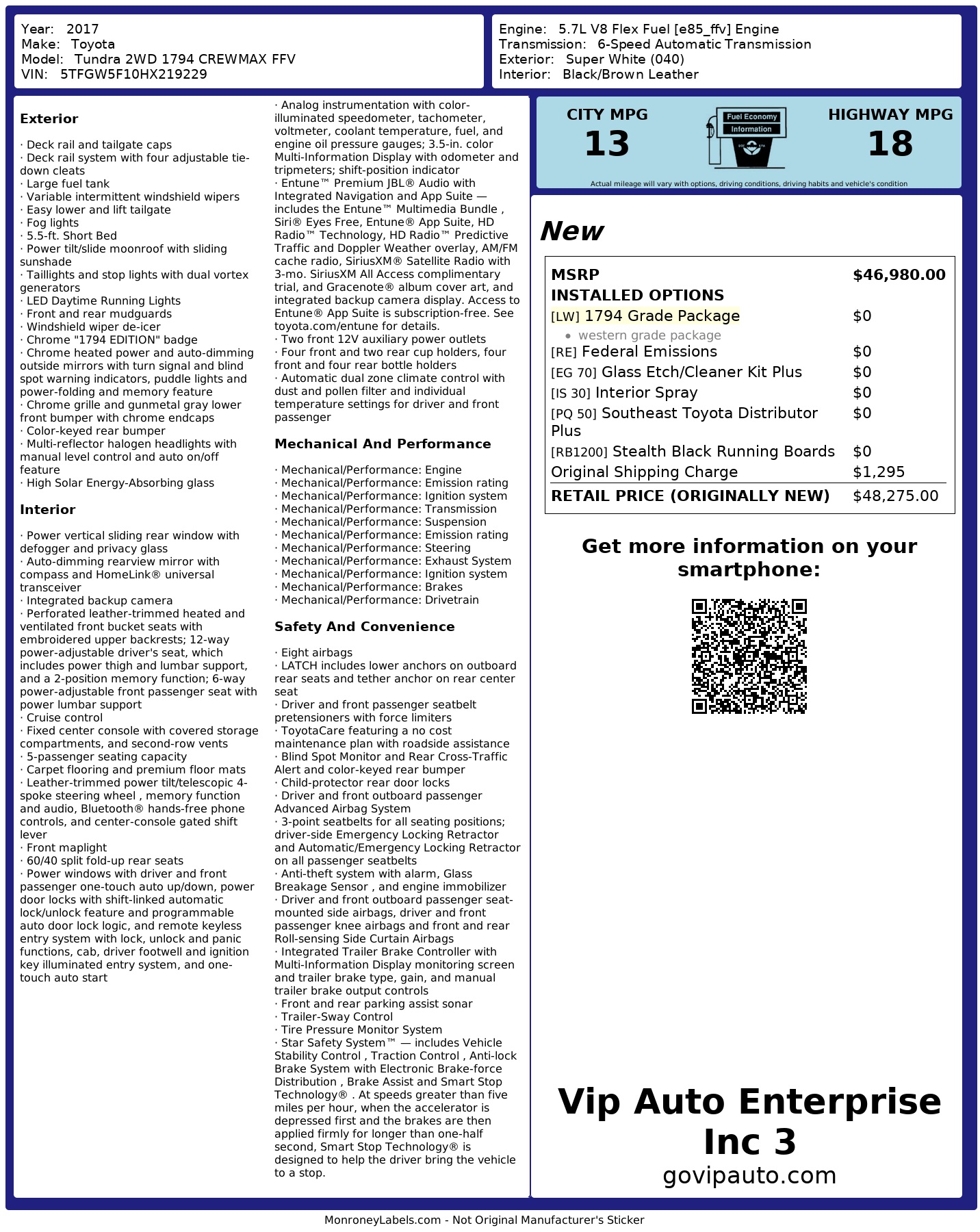 2017 Toyota Tundra 2 Wd 1794 Crewmax Ffv