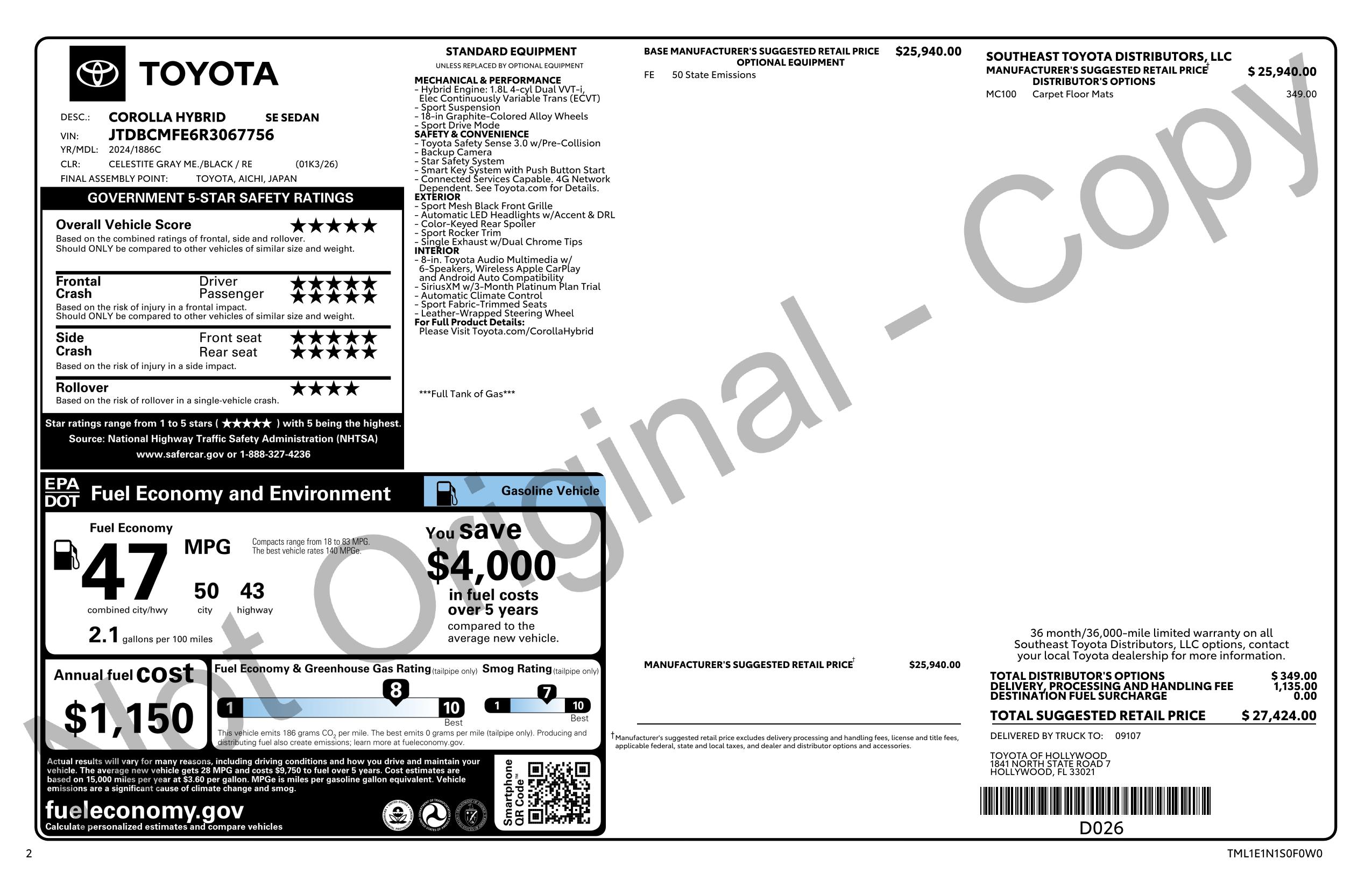 2024 Toyota Corolla Hybrid Fwd (Natl)