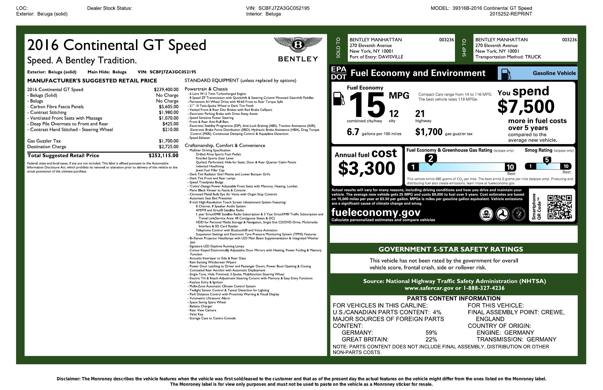 2016 Bentley Continental Gt 2dr Cpe Speed
