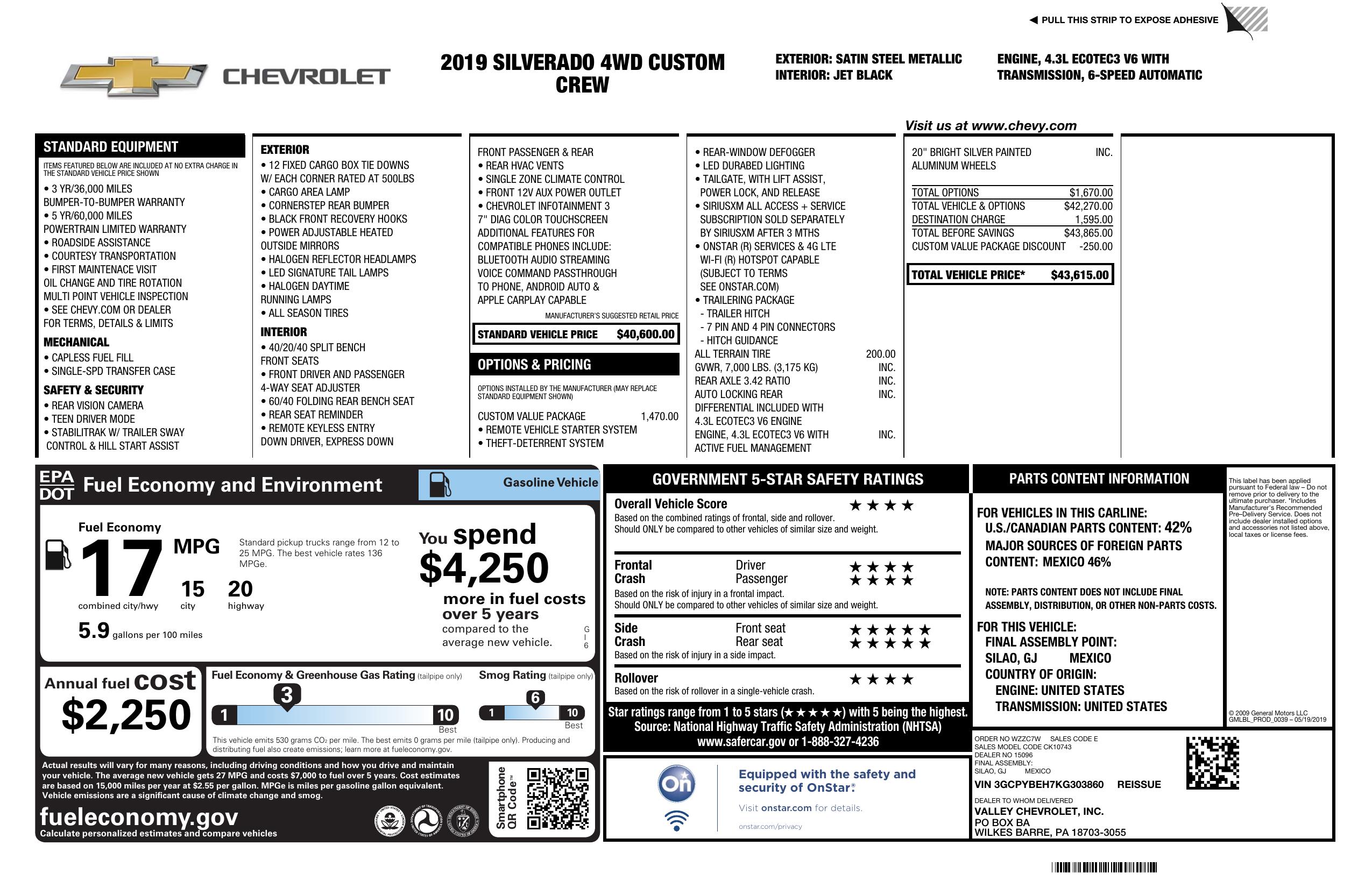 2019 Chevrolet Silverado 1500 4 Wd Crew Cab 157" Custom