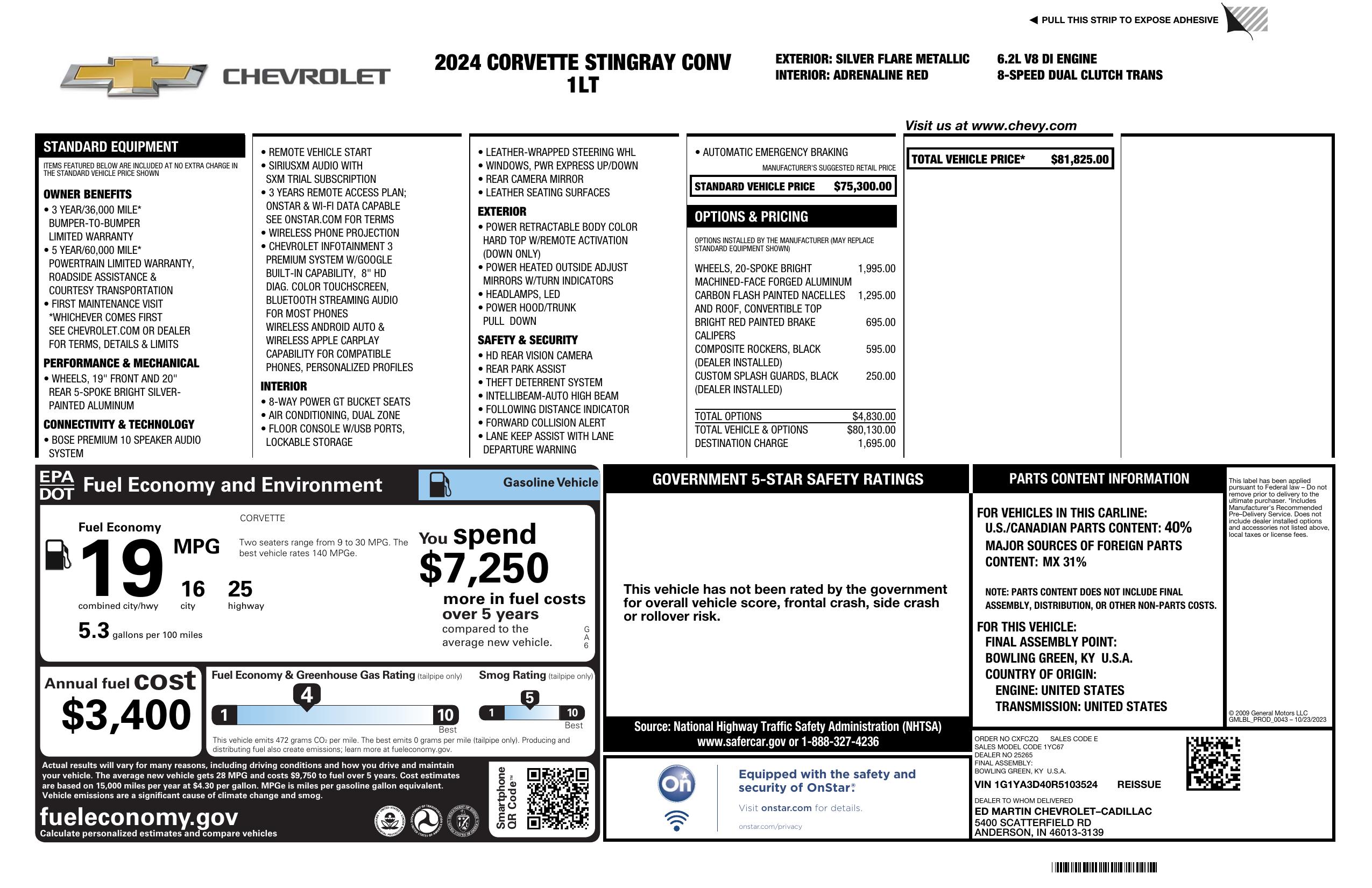 2024 Chevrolet Corvette 2dr Stingray Conv W/1 Lt