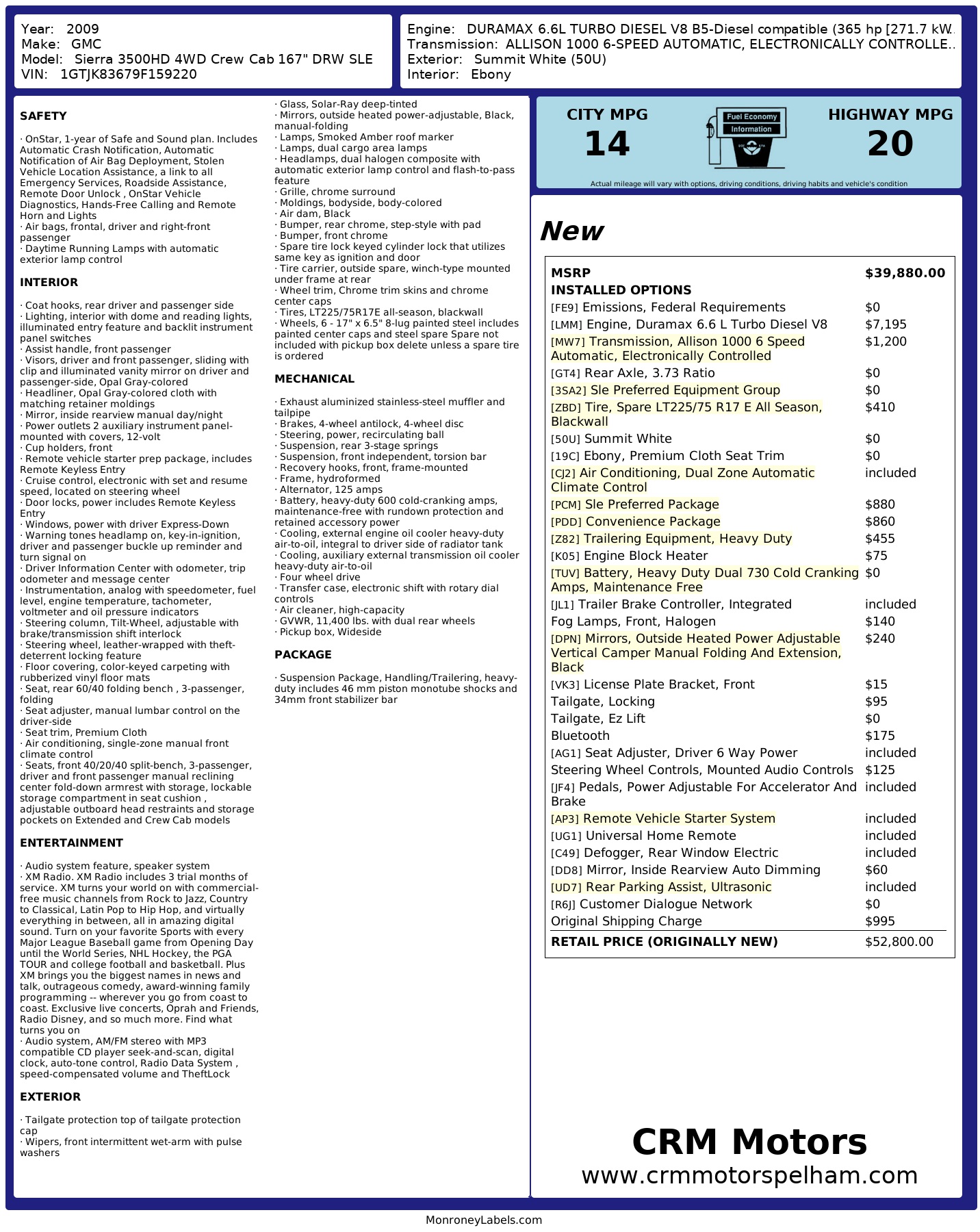 2009 GMC Sierra 3500 Hd 4 Wd Crew Cab 167" Drw Sle