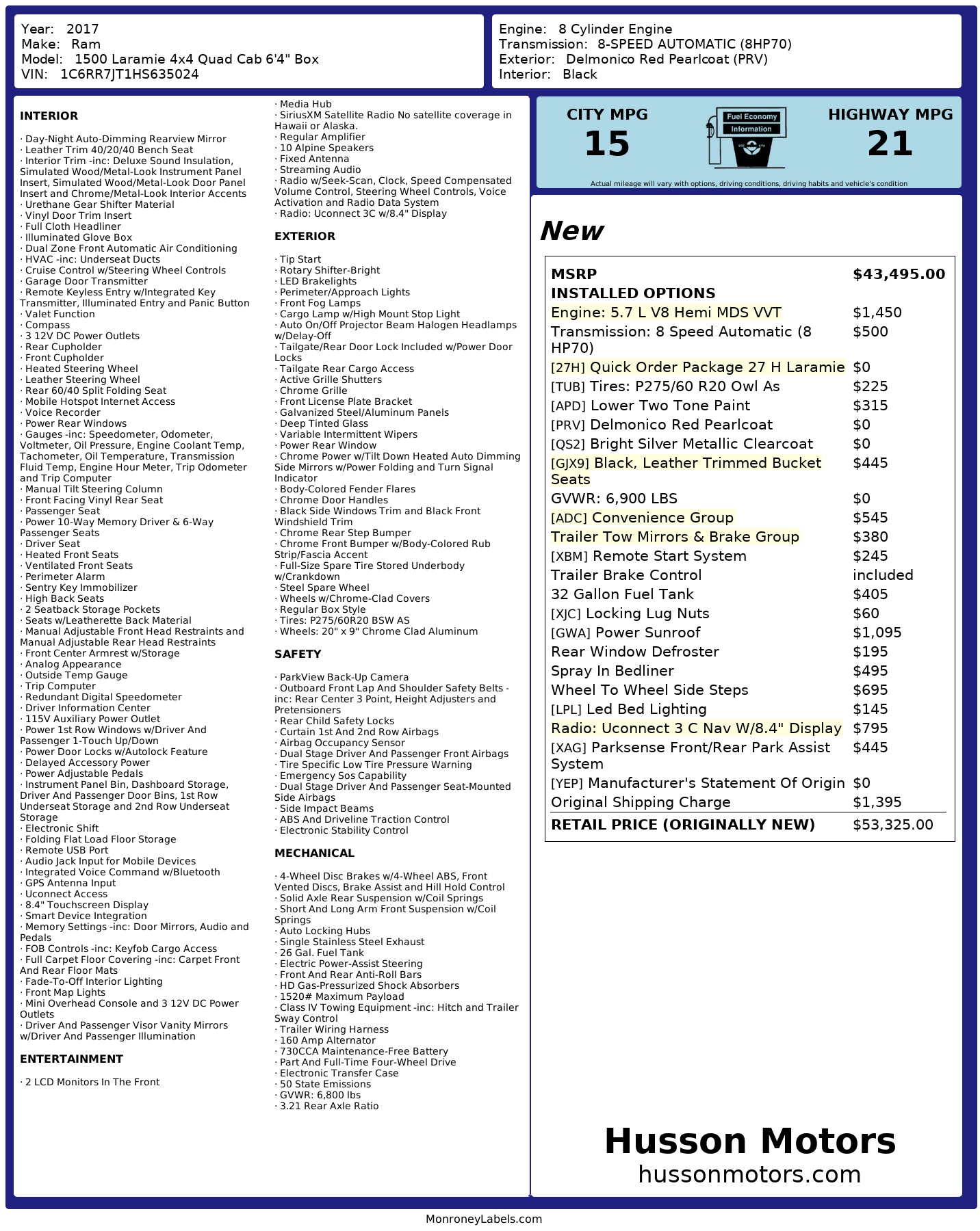 2017 Ram 1500 Laramie 4x4 Quad Cab 6'4" Box