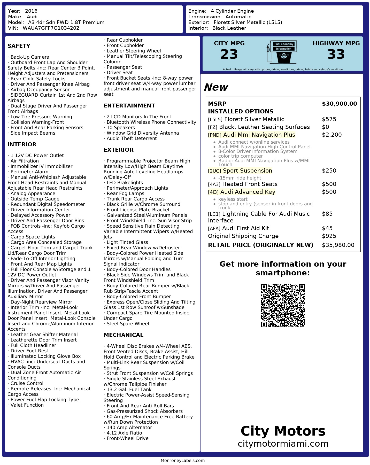 2016 Audi A3 4dr Sdn Fwd 1.8 T Premium
