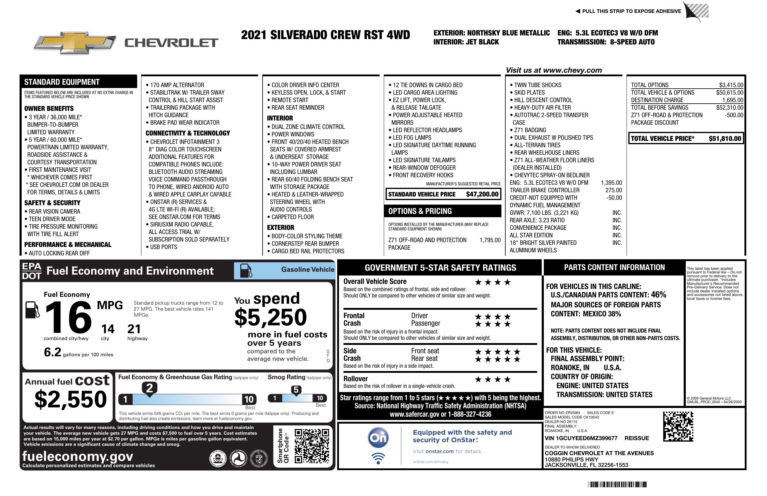 2021 Chevrolet Silverado 1500 4 Wd Crew Cab 147" Rst