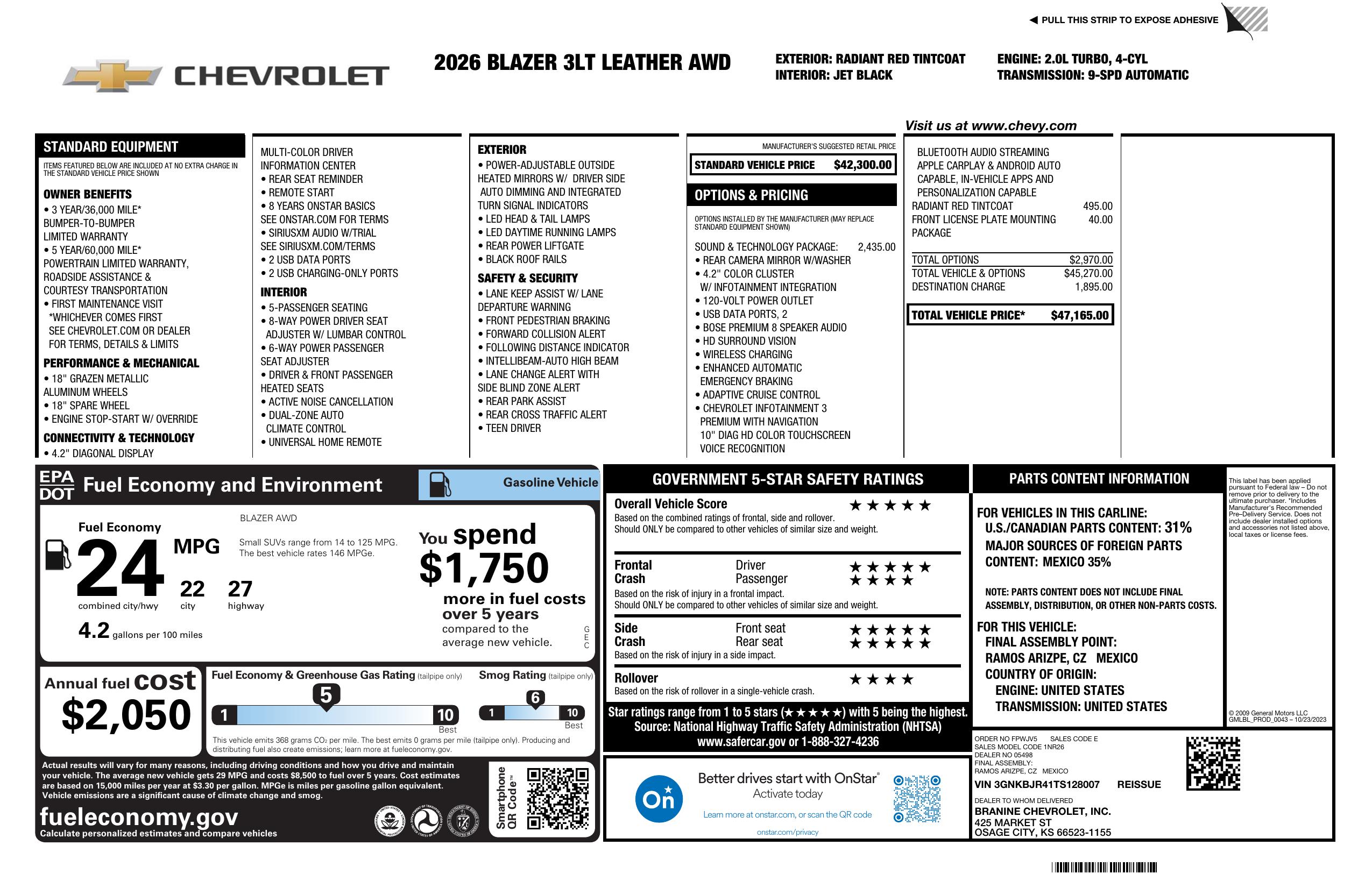 2026 Chevrolet Blazer Awd 4dr Lt W/3 Lt