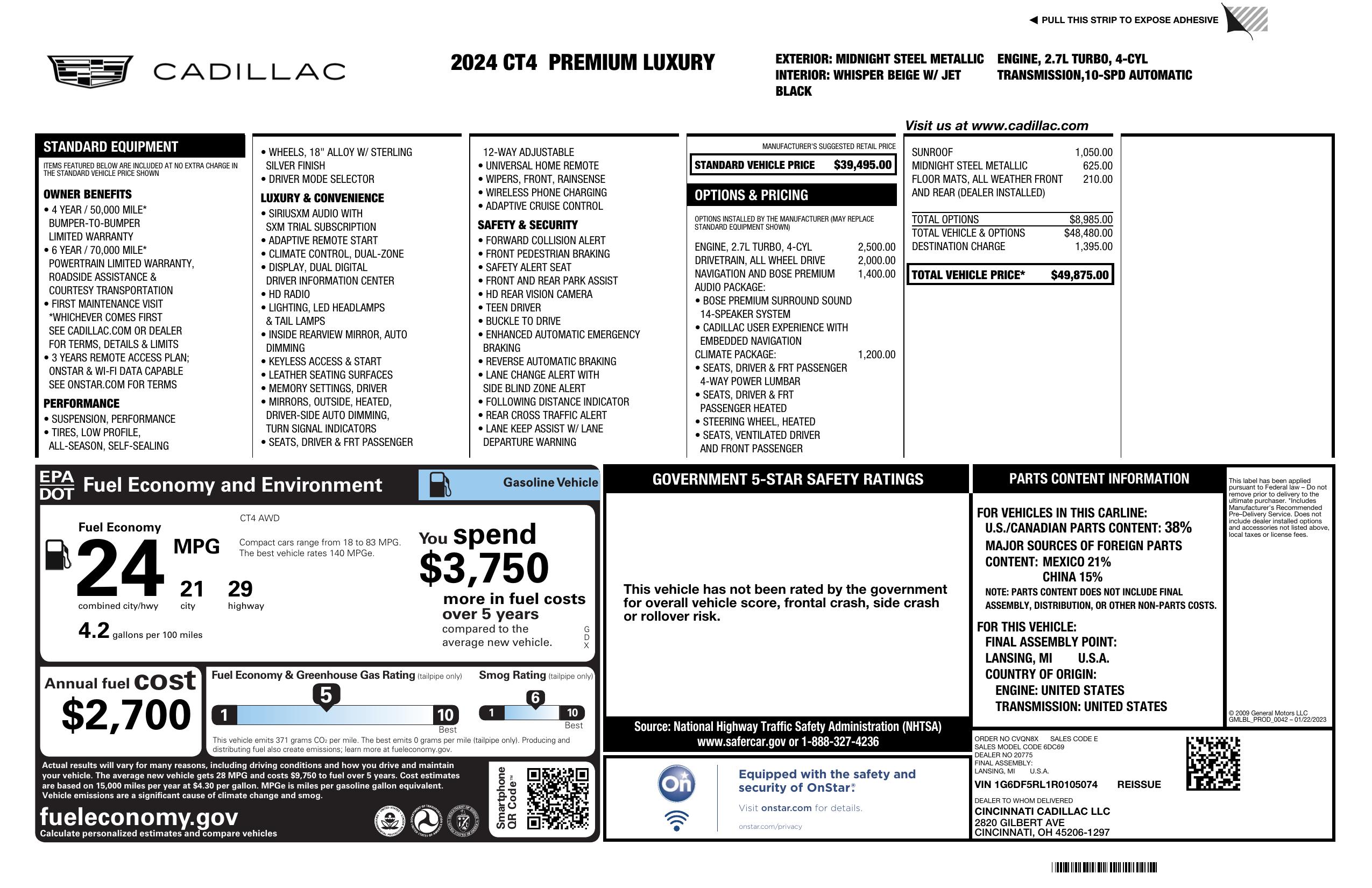2024 Cadillac Ct4 4dr Sdn Premium Luxury