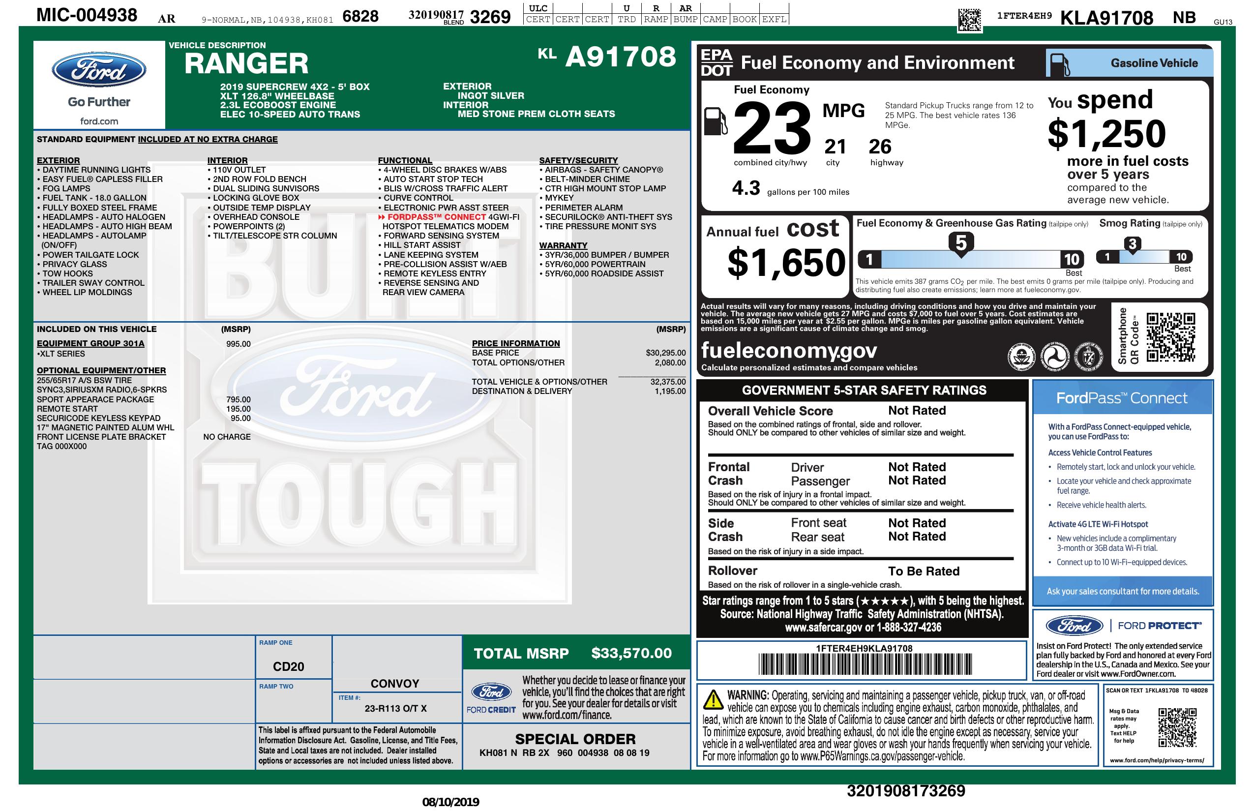 2019 Ford Ranger 2 Wd Super Crew 5' Box