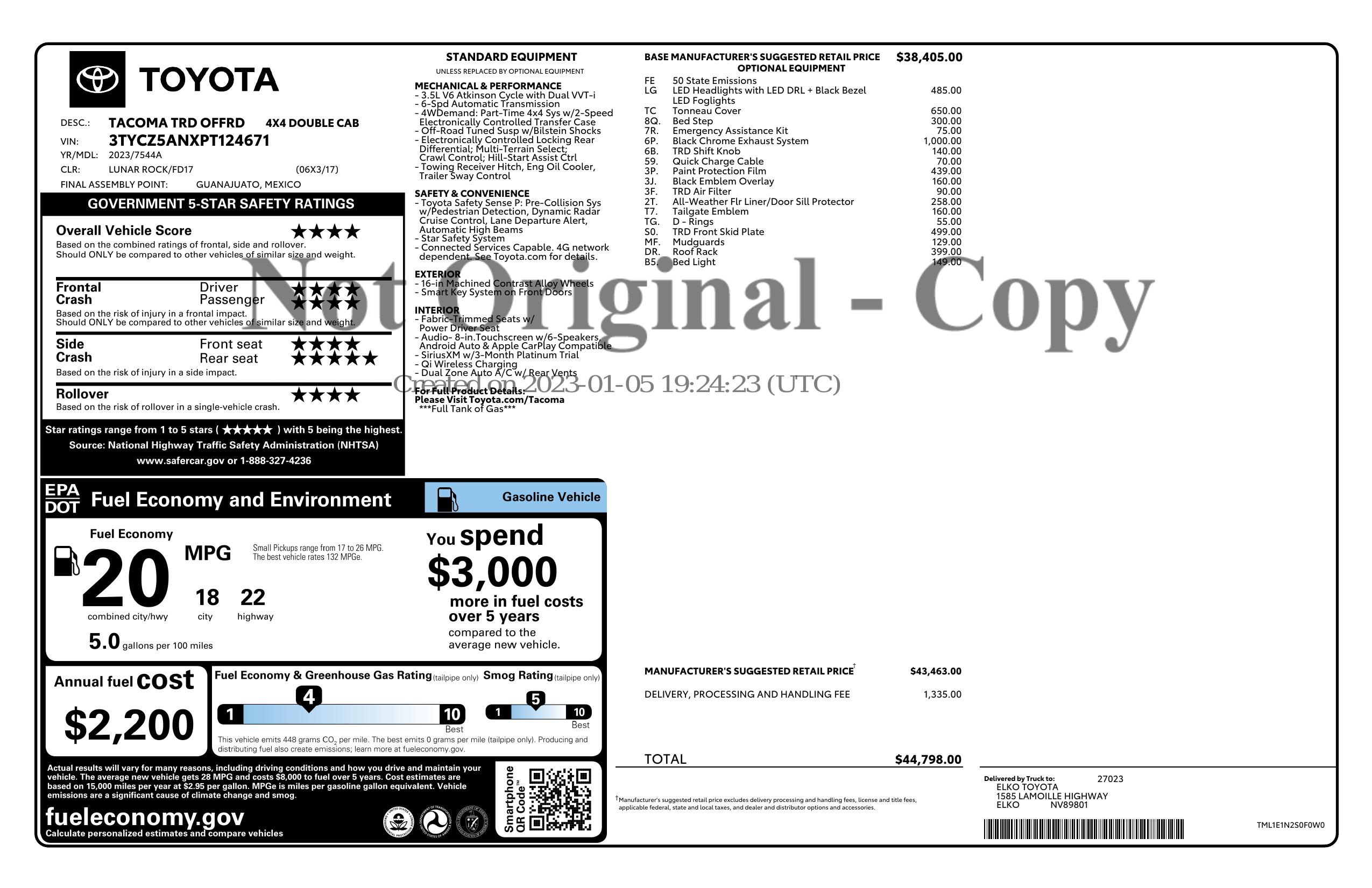 2023 Toyota Tacoma 4 Wd Double Cab 5' Bed V6 (Natl)