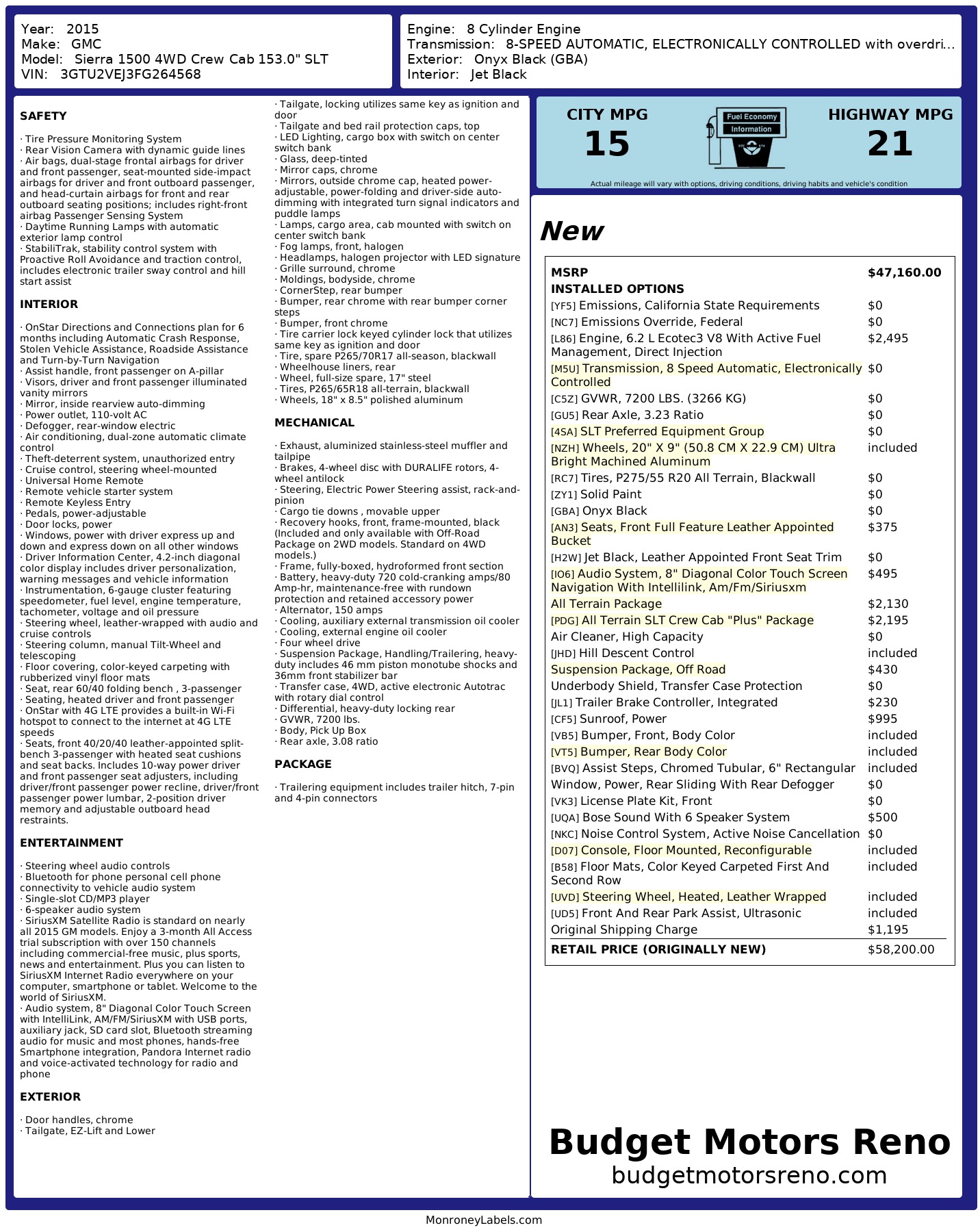 2015 GMC Sierra 1500 4 Wd Crew Cab 153.0" Slt