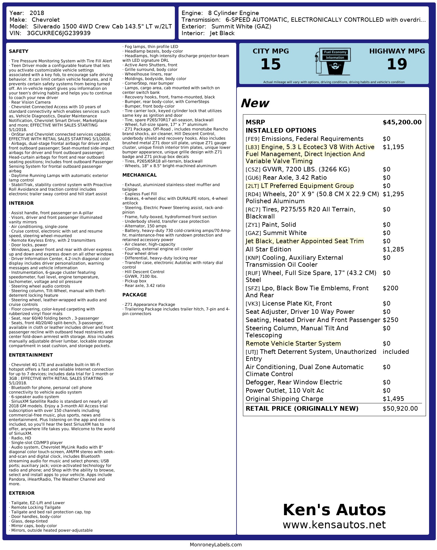 2018 Chevrolet Silverado 1500 4 Wd Crew Cab 143.5" Lt W/2 Lt