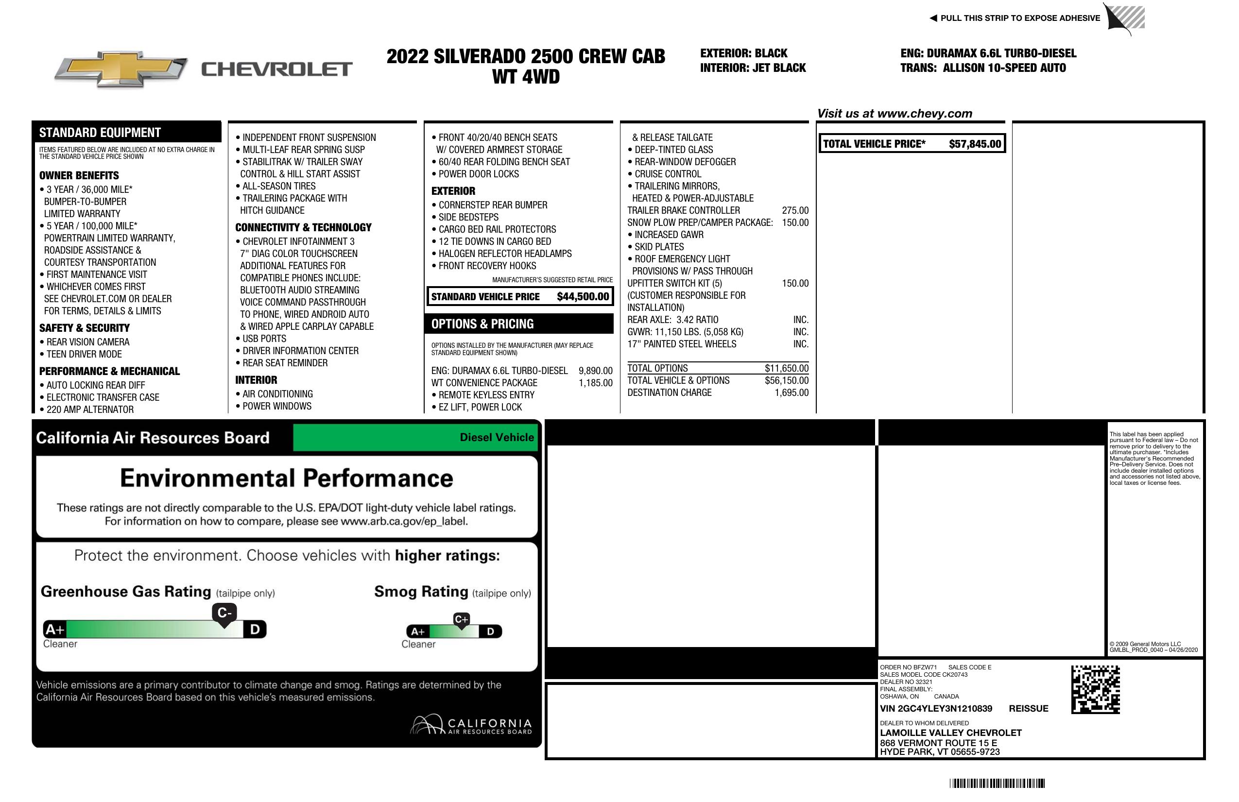 2022 Chevrolet Silverado 2500 Hd 4 Wd Crew Cab 159" Work Truck