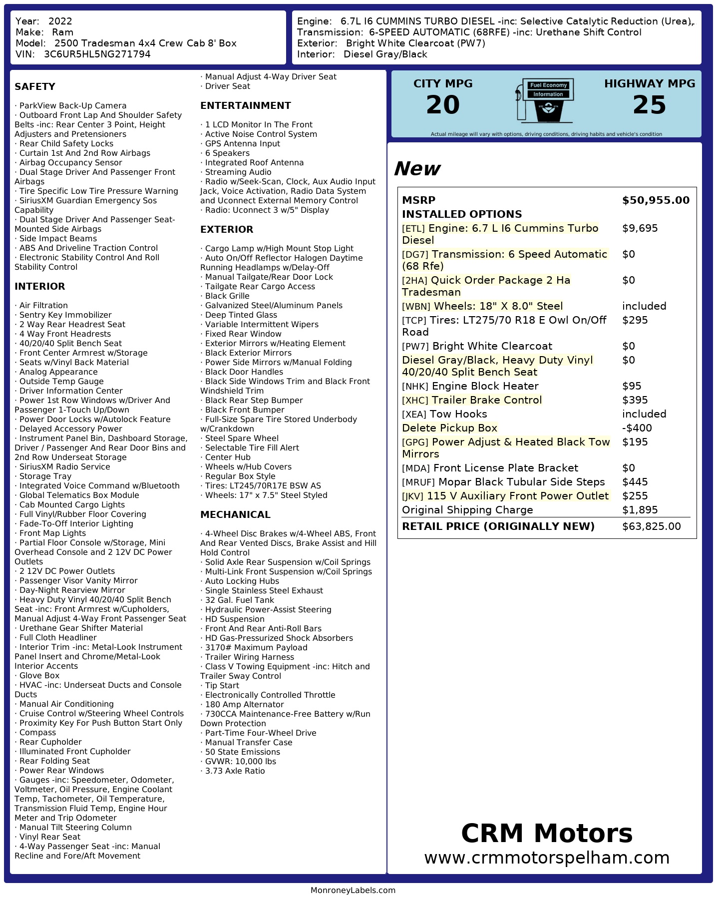 2022 Ram 2500 Tradesman 4x4 Crew Cab 8' Box