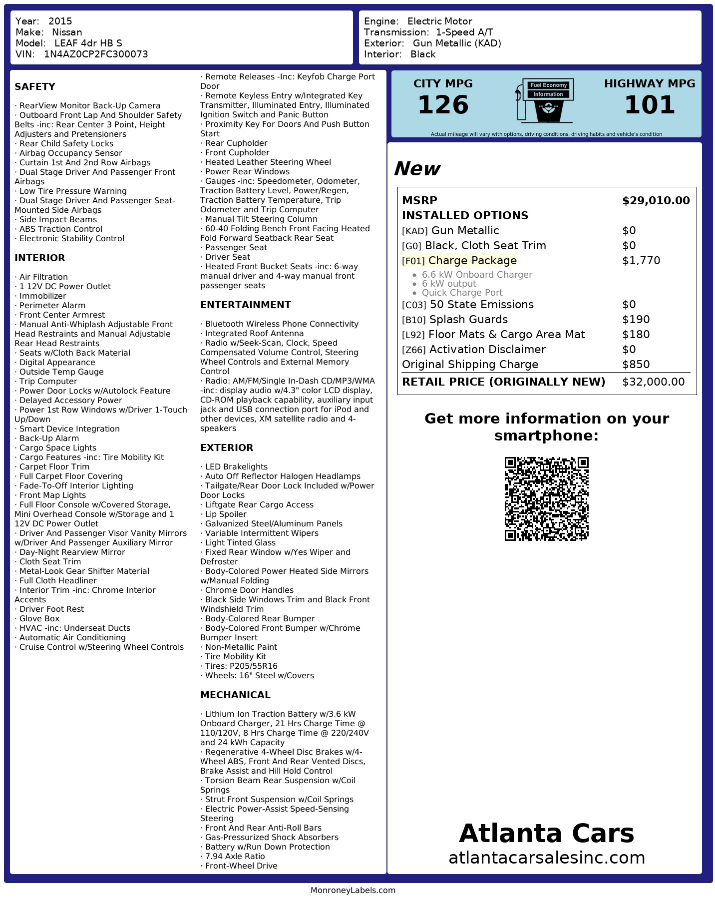 2015 Nissan Leaf 4dr Hb S