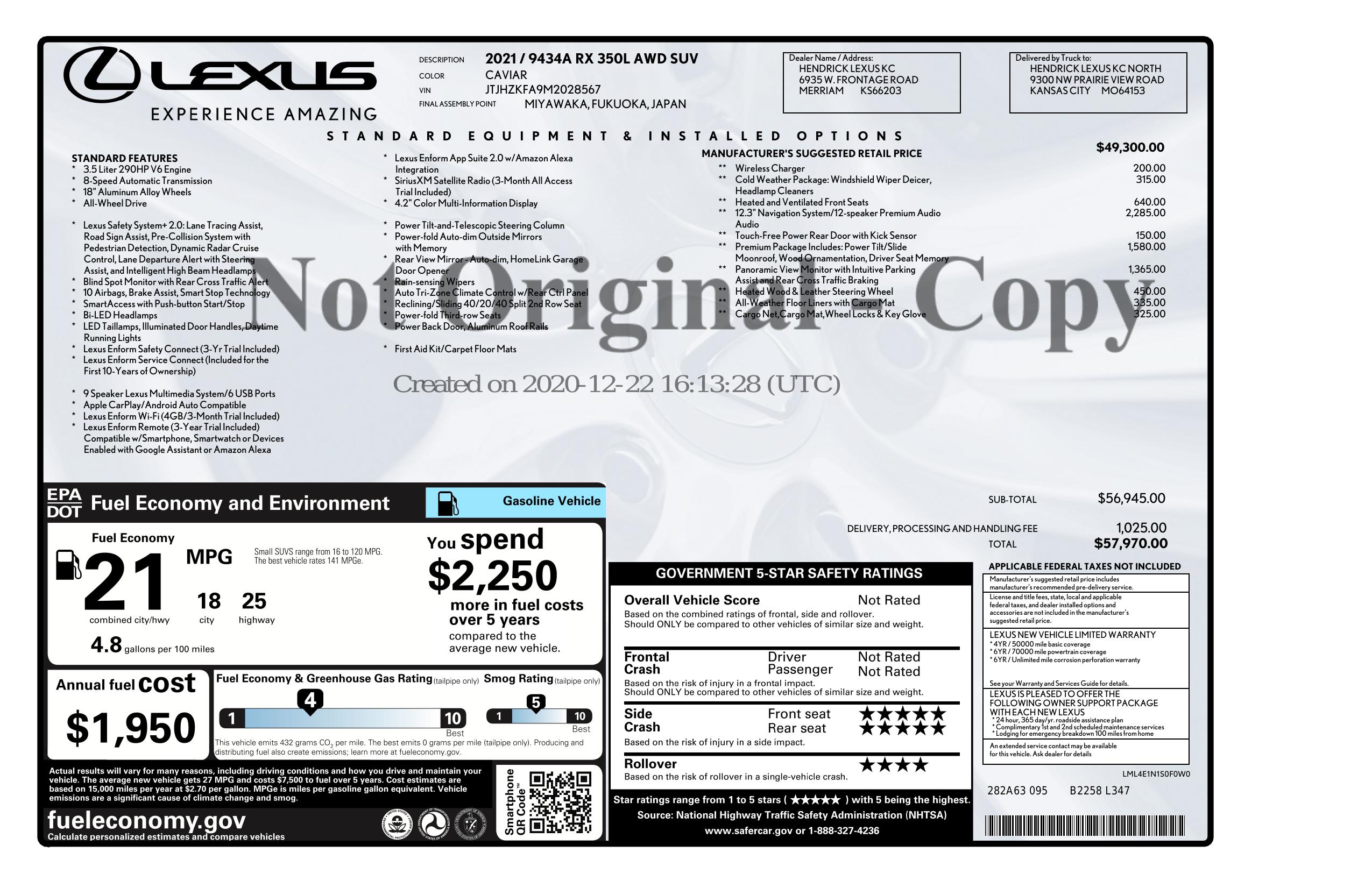 2021 Lexus Rx 350 L