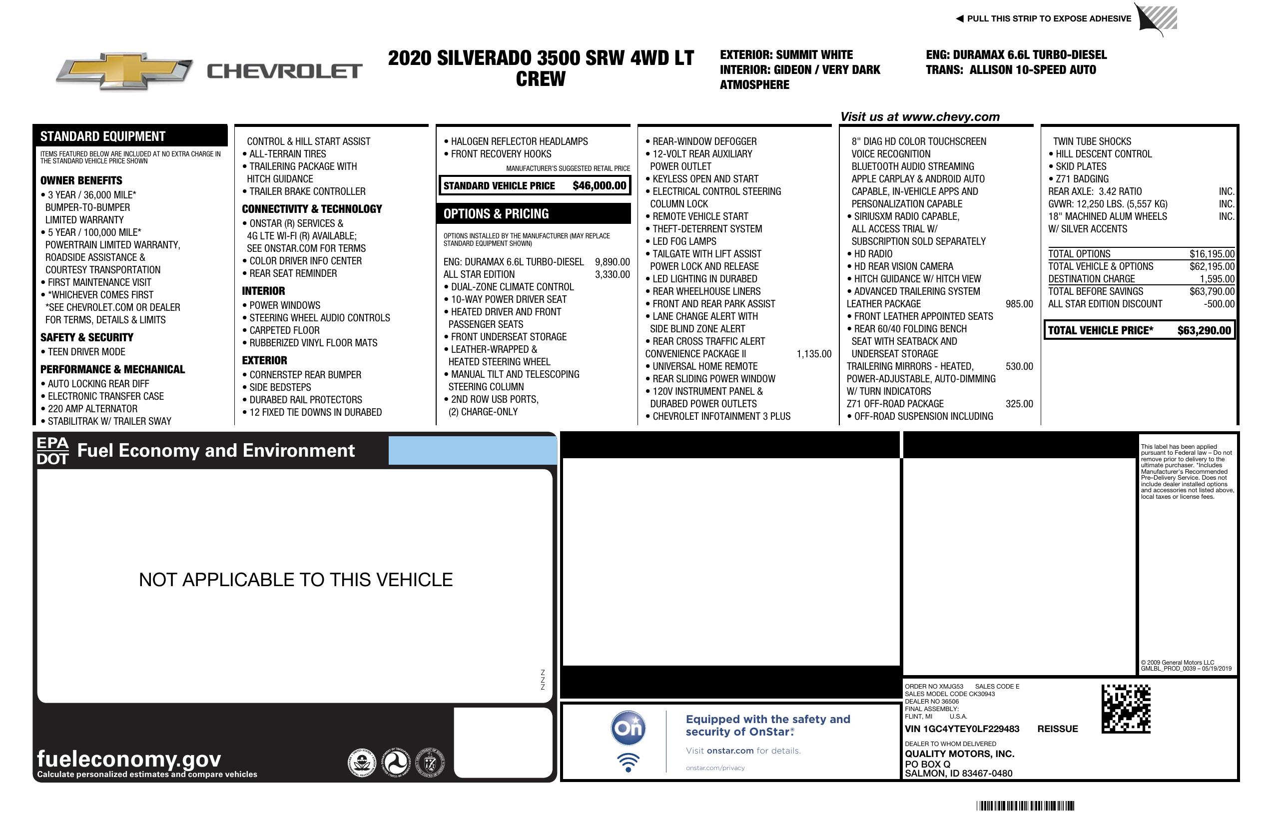 2020 Chevrolet Silverado 3500 Hd 4 Wd Crew Cab 172" Lt