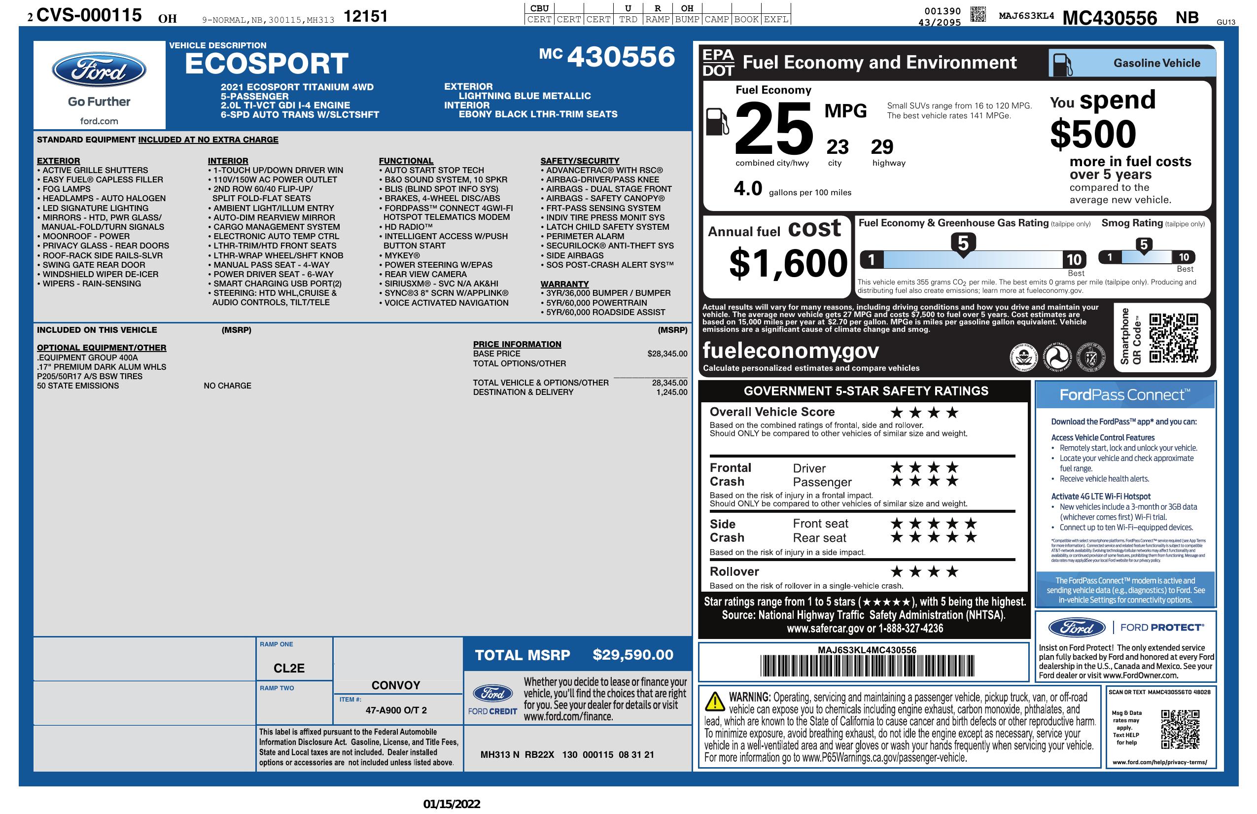 2021 Ford Eco Sport Titanium 4 Wd