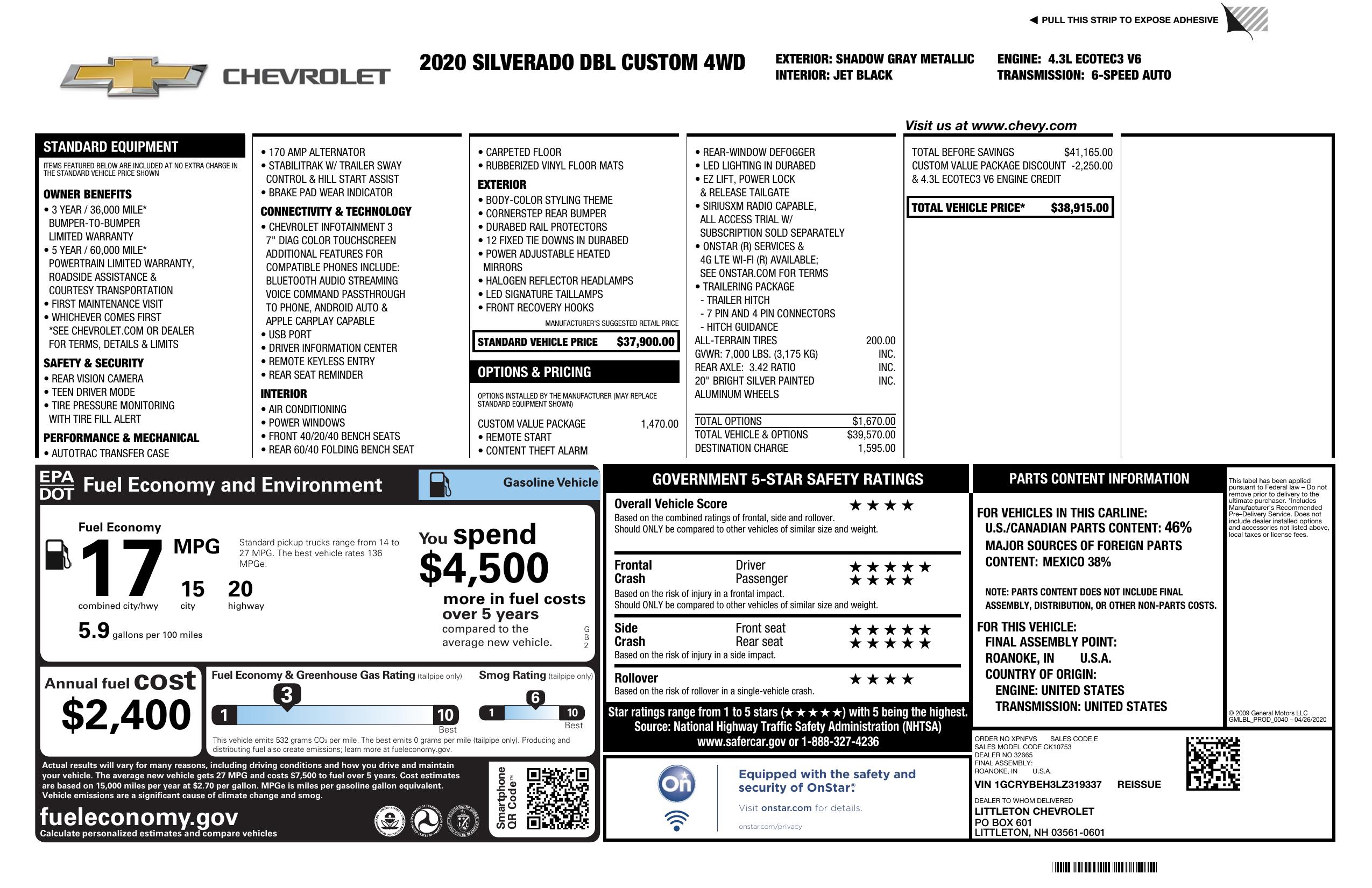 2020 Chevrolet Silverado 1500 4 Wd Double Cab 147" Custom