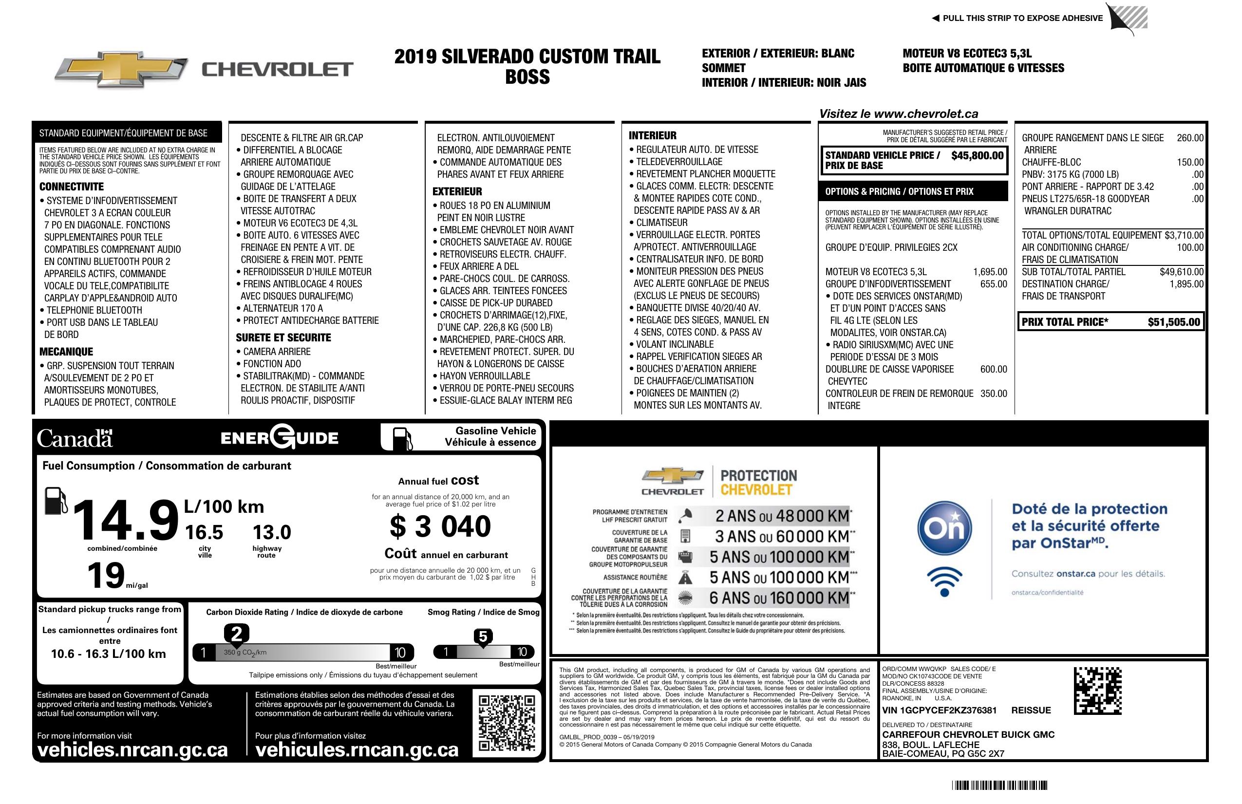 2019 Chevrolet Silverado 1500 4 Wd Crew Cab 157" Custom Trail Boss