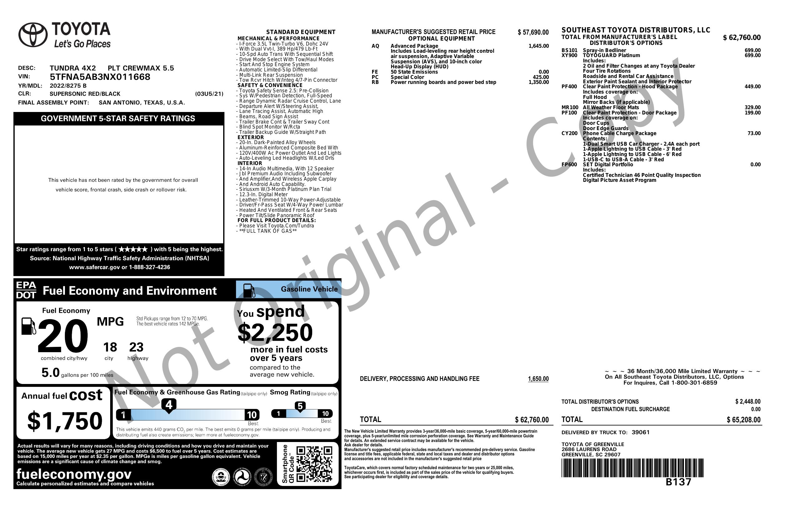 2022 Toyota Tundra 2 Wd Platinum Crew Max 5.5' Bed 3.5 L (Natl)