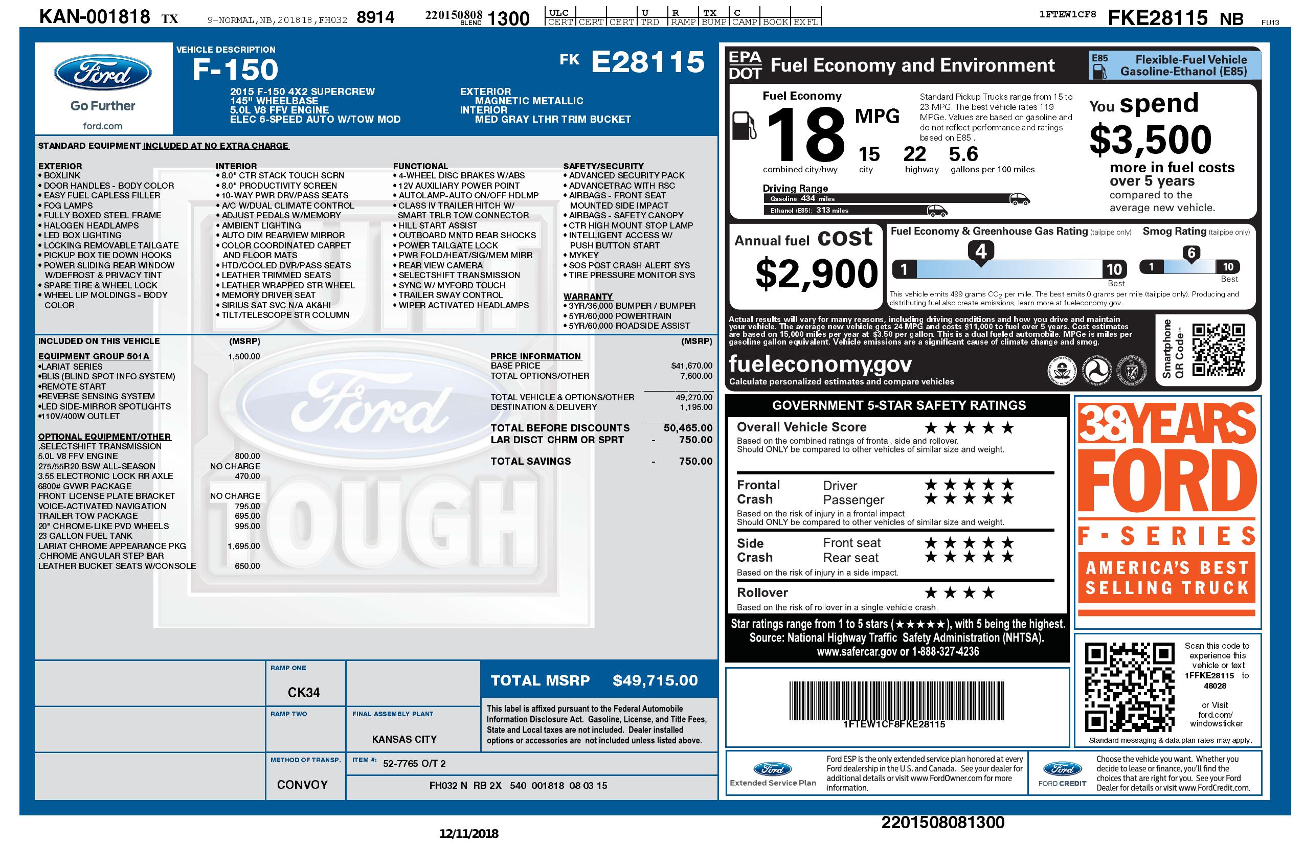 2015 Ford F 150 2 Wd Super Crew
