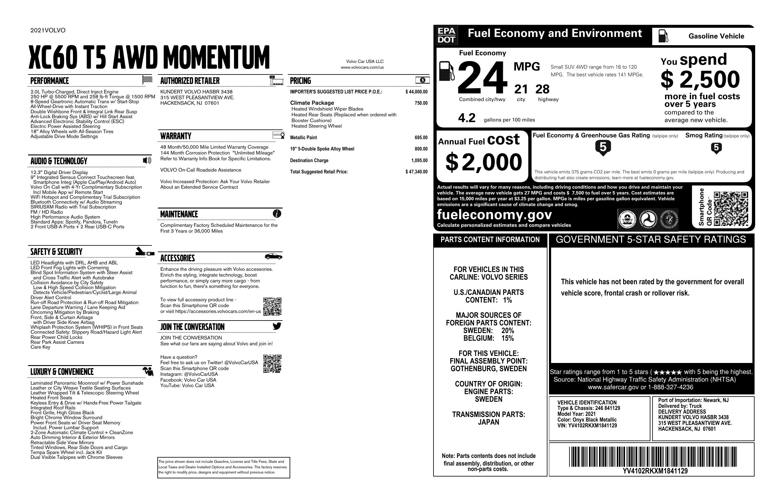 2021 Volvo Xc60 T5 Awd Momentum