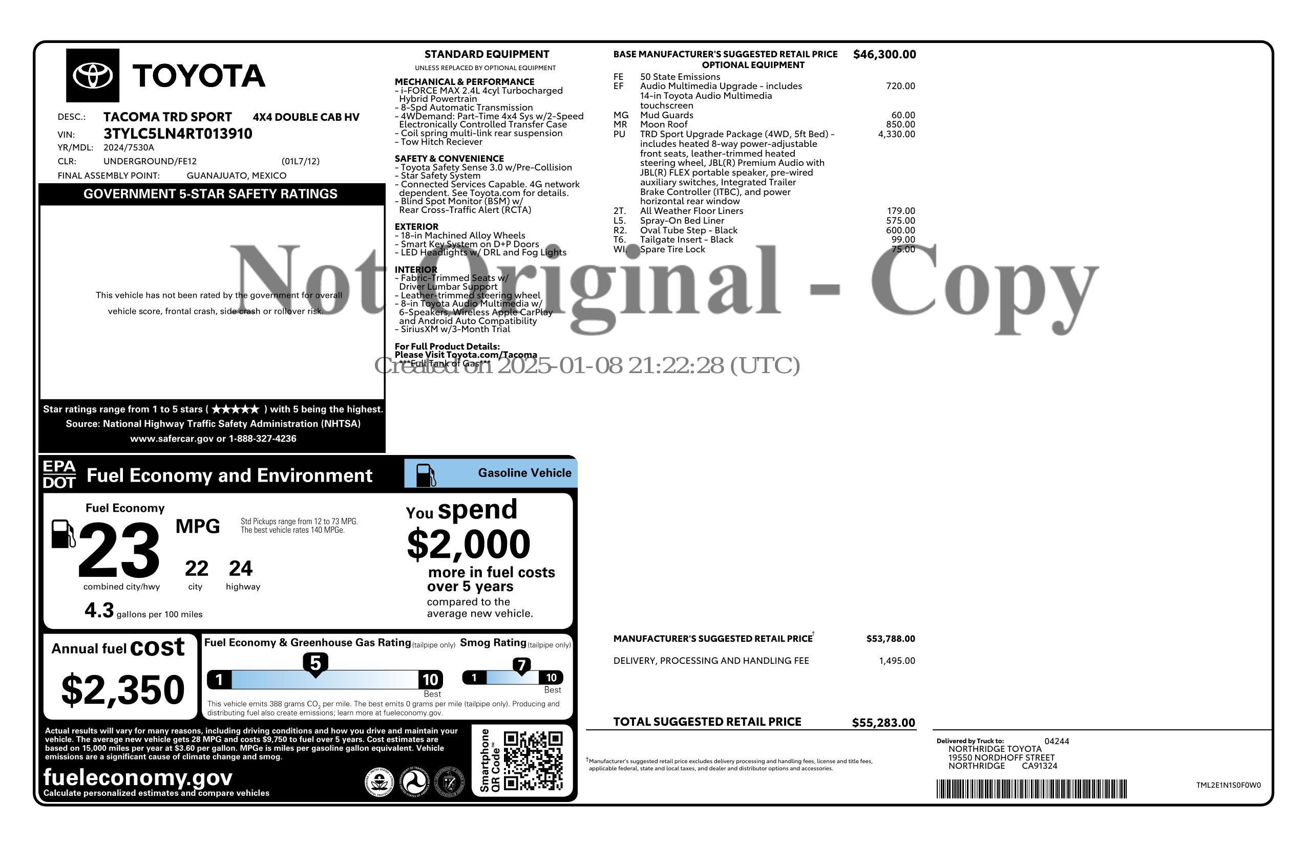 2024 Toyota Tacoma 4 Wd Hybrid Double Cab Bed At (Natl)
